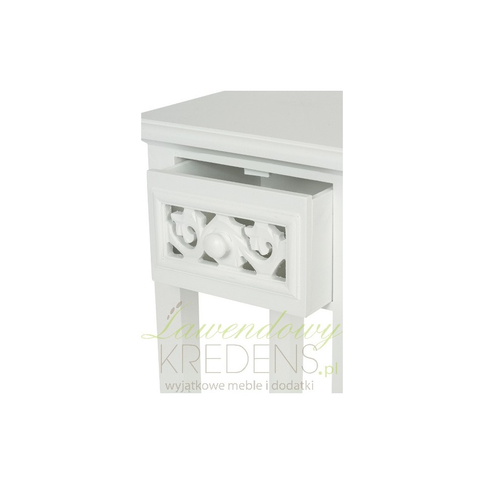 Stolik prowansalski to projekt, który stanowi połączenie skandynawskiej harmonii z francuskim klimatem i miłością do natury. Tam bowiem, w Prowansji doceniane są proste formy w atrakcyjnym wydaniu. Wysokie stoliki w stylu prowansalskim z szufladką i ażurowym cokołem sprawdzą się w salonach. Białe meble prowansalskie to meble eleganckie z delikatną nutą rystkalnego charakteru.