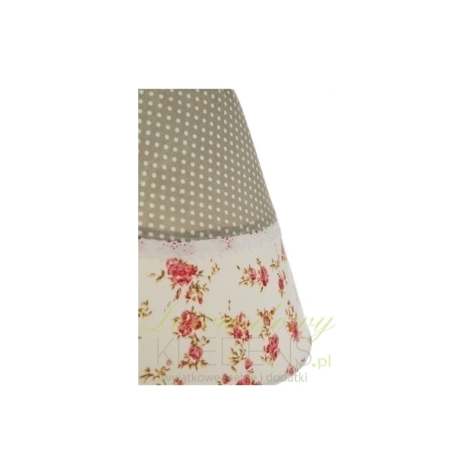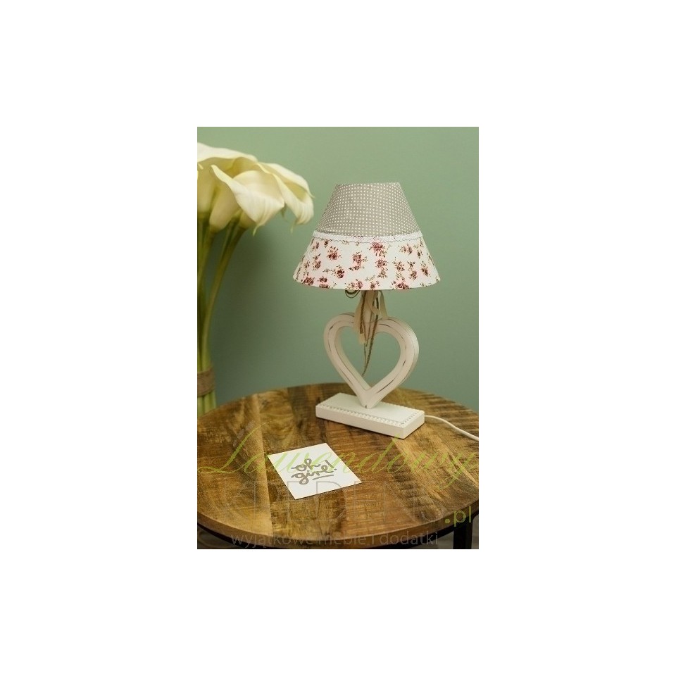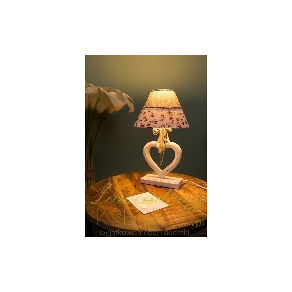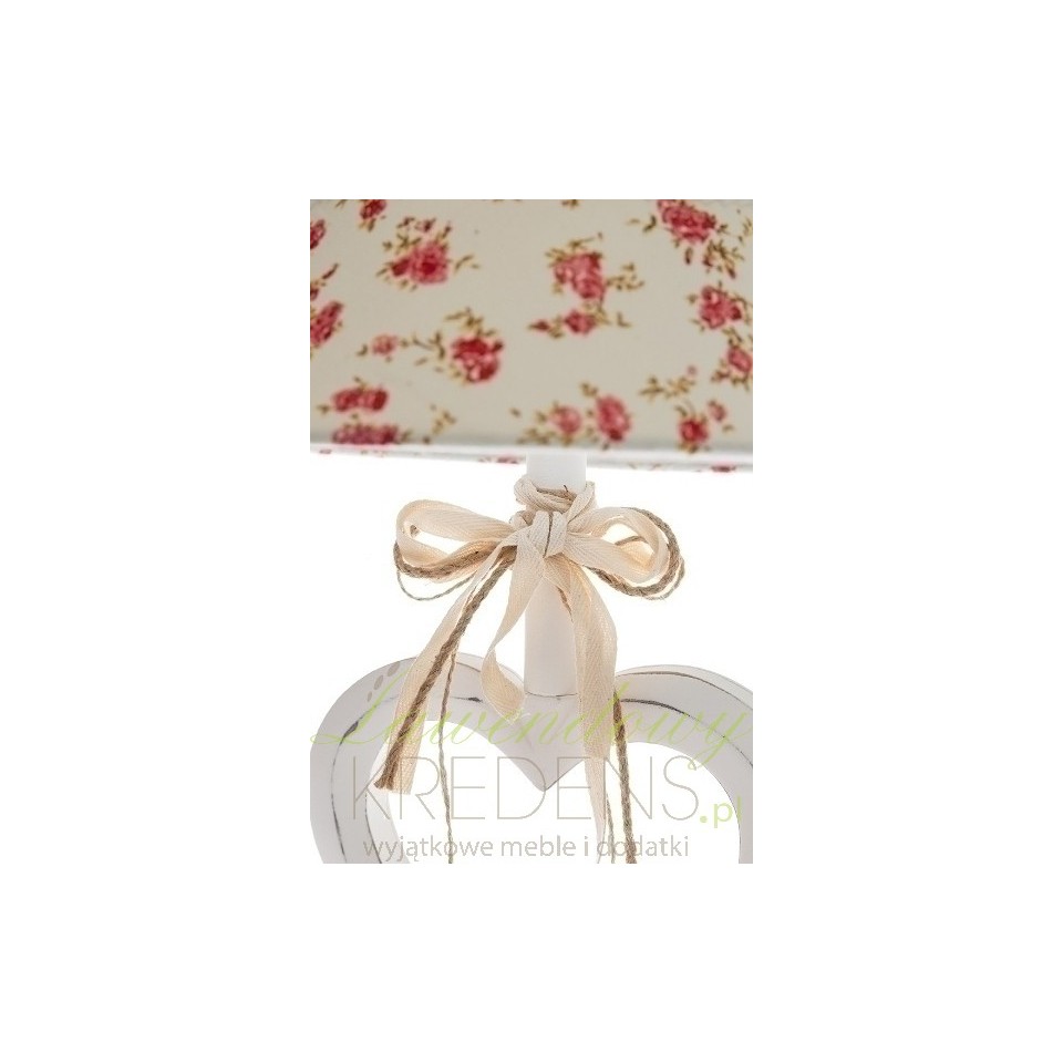 Prezentowana lampka w stylu prowansalskim skutecznie przyciągnie wzrok każdego, kto przekroczy próg Twojego salonu bądź sypialni. Klasyczny, trapezowy abażur wykonano z dwóch rodzajów tkanin: kwiecistej i kropkowanej. Biały kolor, którym pokryto podstawę lampy w kształcie serca podkreśla jej łagony styl. Prowansalskie lampki nocne pełnią bardzo ważną rolę w sypialnianej przestrzeni.
