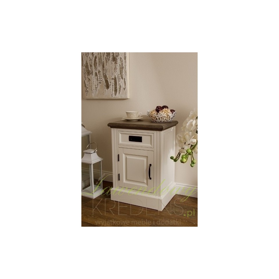 Wprowadź delikatny, prowansalski akcent przeszłości do swojej sypialni wybierając szafki nocne z kolekcji Marlo. Mdf i drewno o wysokiej wytrzymałości są gwarancją solidnej i stabilnej konstrukcji. Szafka nocna w stylu prowansalskim posiada szafkę i szufladkę. Prowansalska szafka nocna najlepiej wygląda w połączeniu z budzikiem i stylową lampką.