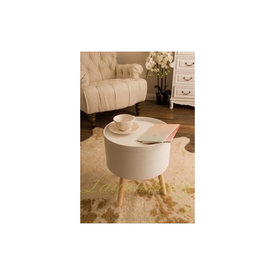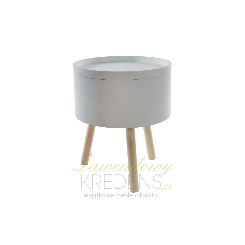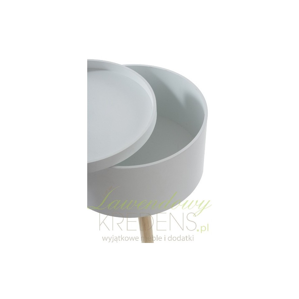 Ten ponadczasowy stolik ze schowkiem wniesie do każdego wnętrza mnóstwo stylu i klasy. Bardzo prosta forma stolika z okrągłym blatem i schowkiem pasuje do każdego pomieszczenia, nadając mu elegancki i nietuzinkowy charakter. Blat opiera się na trzech, prostych i krótkich nogach, które zapewniają powierzchni roboczej odpowiednią stabilność. Dokonaj najlepszego wyboru i zamów meble w stylu skandynawskim, po to by rozkoszować się ich wdziękiem przez długie lata.