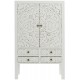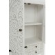 Wysoka, biała komoda we wzory to mebel, jakiego szukasz. Imponuje misternym wzornictwem i zachwyca przemyślanie naniesionymi postarzeniami. Komoda we wzory składa się z dwudrzwiowej szafki i czterech szuflad, w których z łatwością zmieszczą się niezbędne, domowe akcesoria. Mebel wyróżnia się dzięki pięknie rzeźbionym drzwiom i frontom szuflad, a biała kolorystyka jedynie podkreśla jego naturalne piękno. Białe komody we wzory pasują do wnętrz retro, shabby chic i prowansalskich.