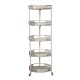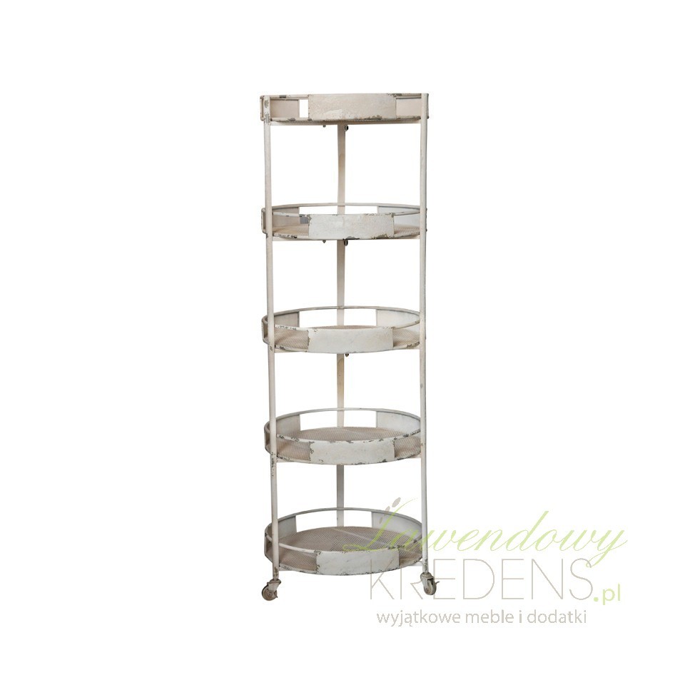 Wysoki, metalowy regał wyposażony w pięć okrągłych półek genialnie sprawdzi się gdy marzysz o stylowej i jednocześnie praktycznej łazience lub kuchni.