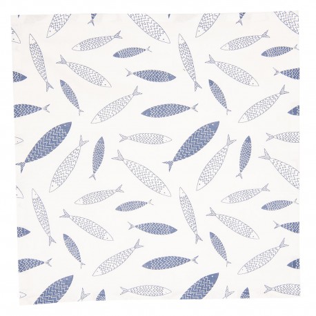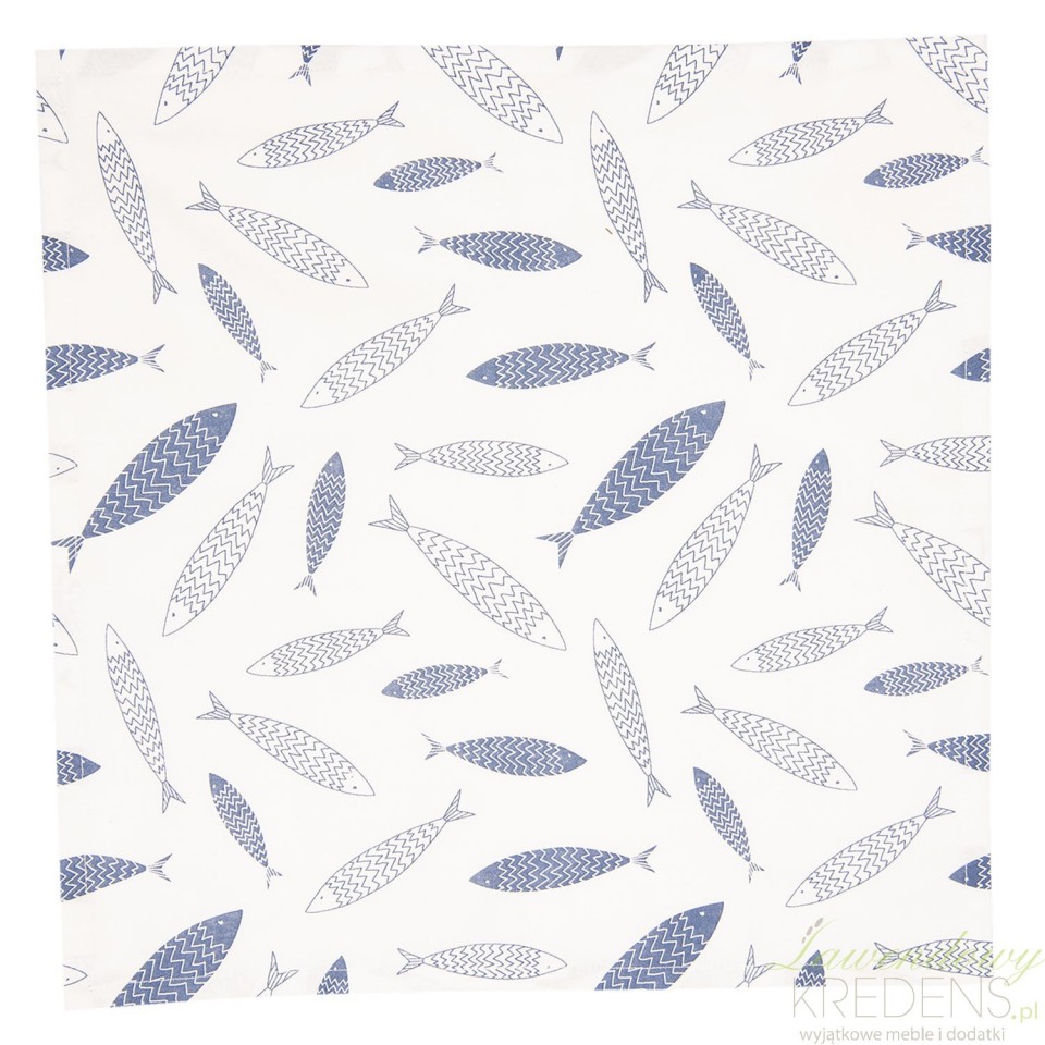 Kwadratowe serwetki bawełniane w stylu marynistycznym mają biały kolor i są zdobione rybami. Idealne na stół do kuchni.