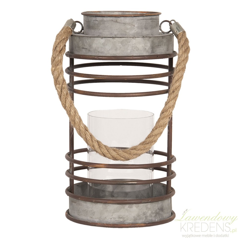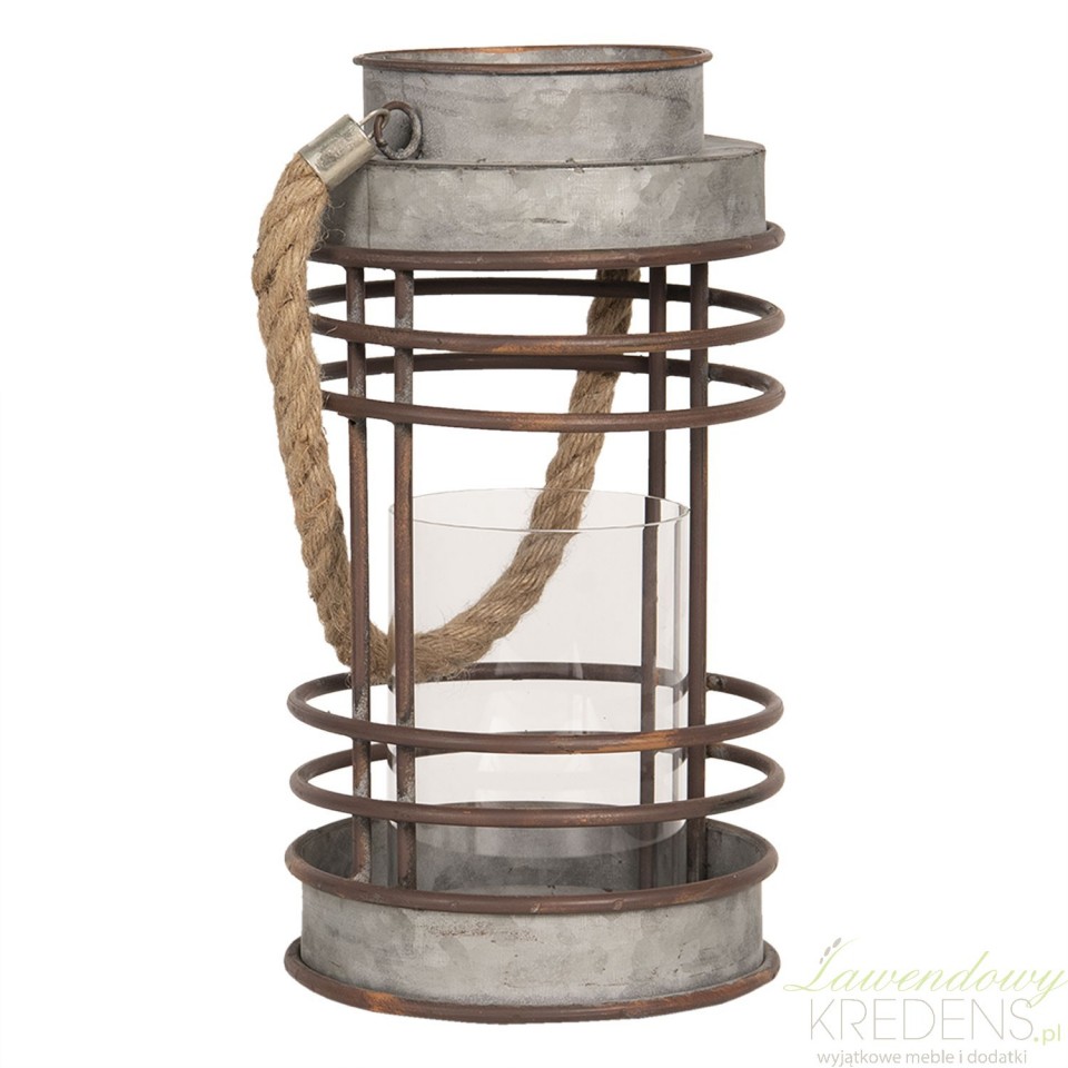 Lampion metalowy latarnia do domu i do ogrodu to stojąca dekoracja w kolorze antycznej szarości. Stylowy lampion w kształcie tuby z szklanym naczyniem wewnątrz sprawdzi się, jako ozdoba do każdego domu, restauracji lub ogródka. Połączenie metalu ze szkłem nadaje mu niebanalnego charakteru. Z pewnością cudownie będzie wyglądał w pomieszczeniach urządzonych na styl vintage, francuski i prowansalski.