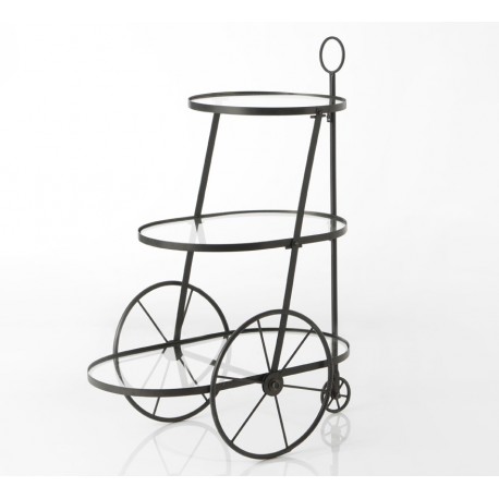 Industrialne meble to spełnienie Twoich oczekiwań o atrakcyjnych i funkcjonalnych elementach wyposażenia wnętrza. Trzypoziomowy barek w stylu industrialnym z szklanymi półkami został wyposażony w trzy kółka i rączkę, dzięki której łatwo będziesz mógł zmienić jego lokalizację, w sytuacji gdy goście zażyczą sobie kolejnej porcji drinków. Nie wahaj się i zamów industrialne meble, które doskonale odwzorowują aktualne trendy.