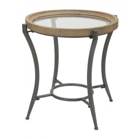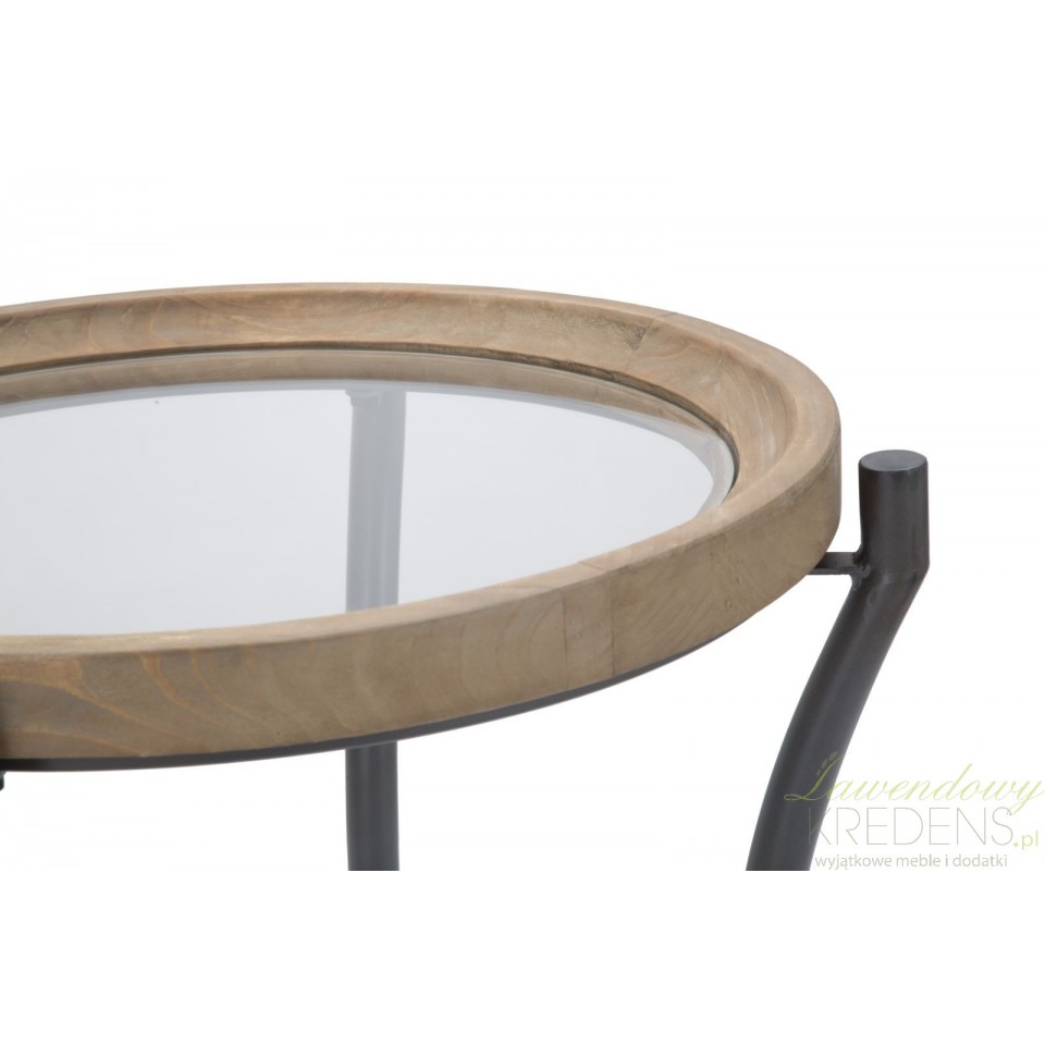 Stolik loft z kolekcji Glasgow posiada szklany, okrągły i przeźroczysty blat. Blat zamocowany pomiędzy czterema wygiętymi nogami posiada drewniane okucie, które zapewnia mu dodatkowe zabezpieczenie. Szklane, metalowe i drewniane elementy razem tworzą stolik idealny do nowoczesnego salonu.Marka Mauro Ferretti tworzy popisowe meble loftowe, które warto mieć w swoim wnętrzu!