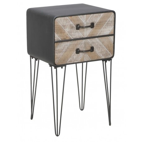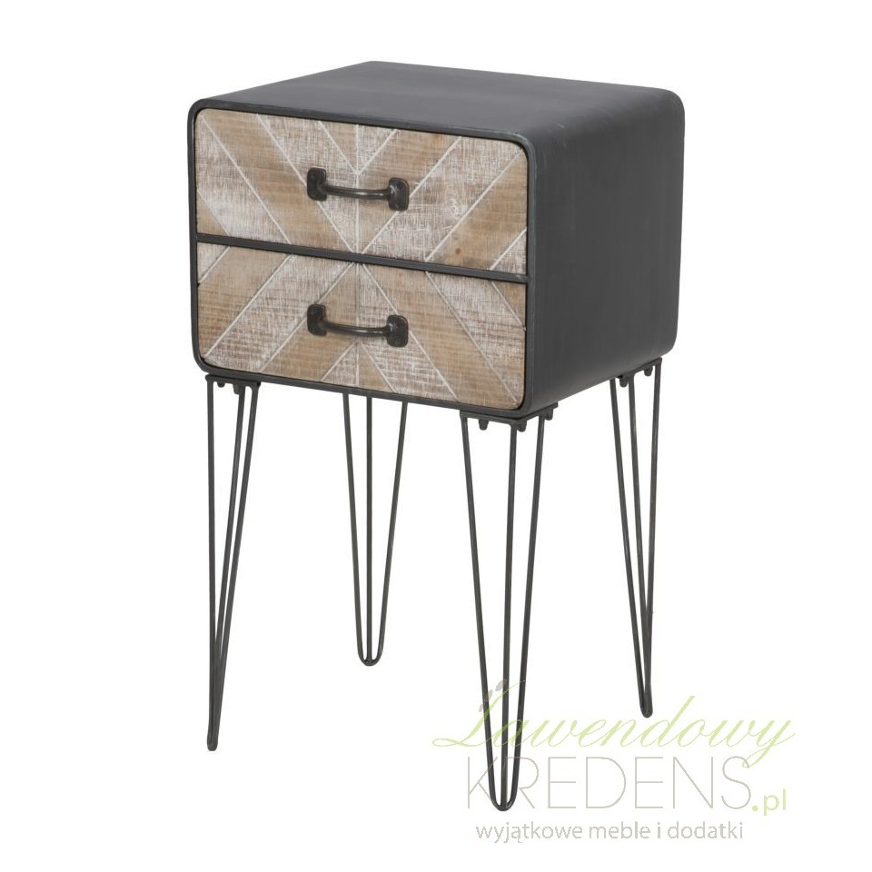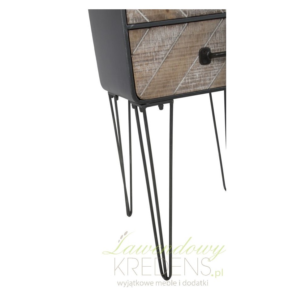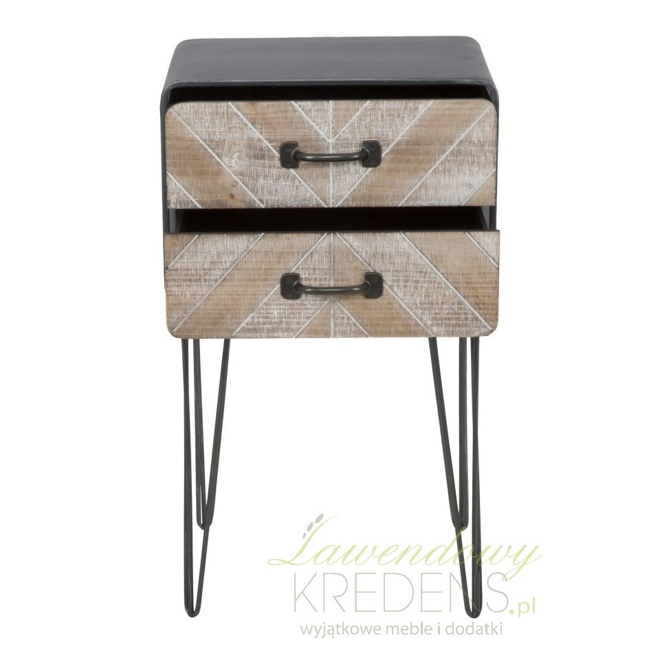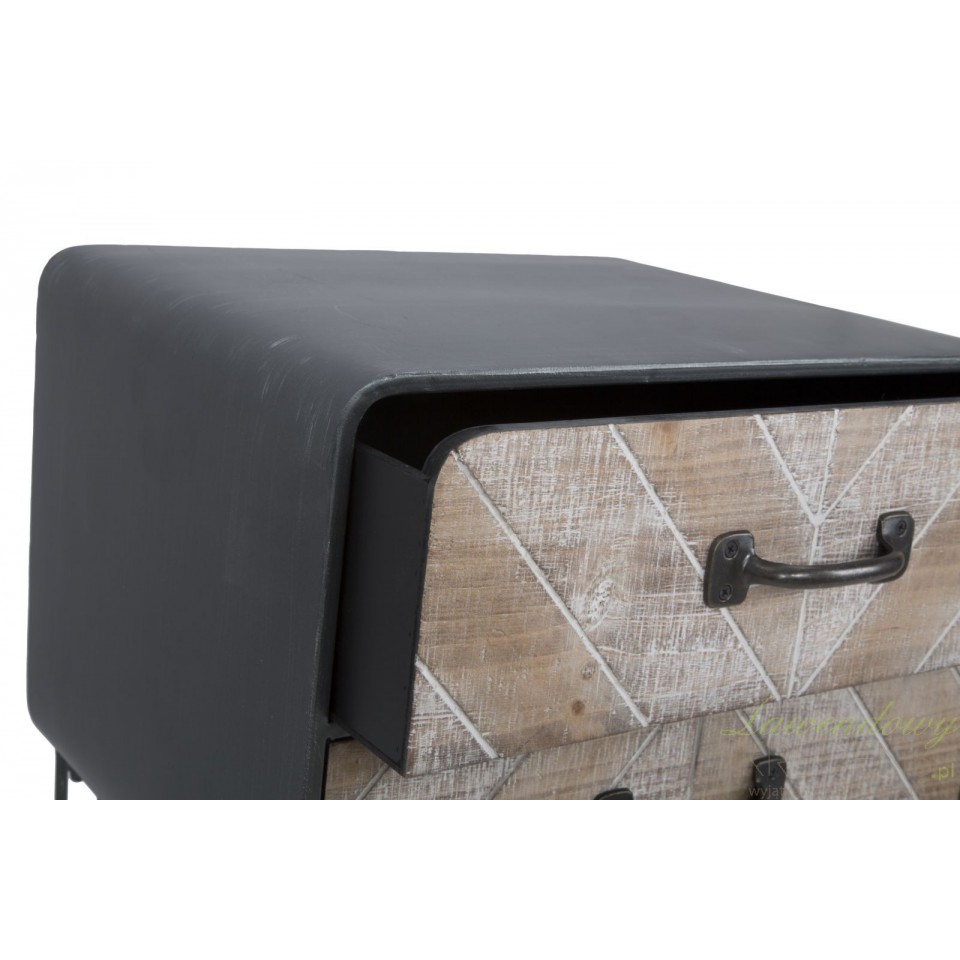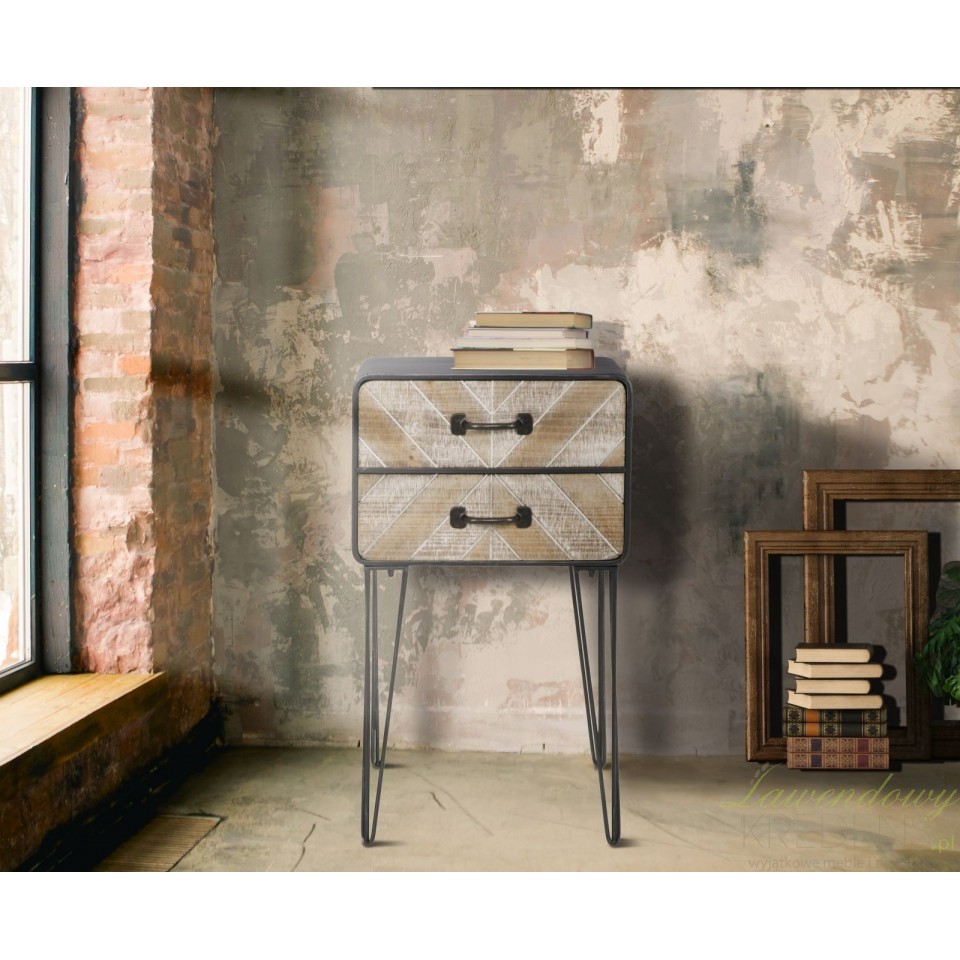 Stolik w stylu industrialnym z kolekcji Oklahoma posiada oryginalną mozaikę w drewnie, wykonaną na każdej z szuflad. Stolik industrialny z metalu pomoże rozwiązać problem z przechowywaniem, z jakim zmagają się posiadacze niewielkich wnętrz. Stolik industrialny sprawdzi się wszędzie tam gdzie nie ma miejsca na szeroką szafę lub komodę. Meble w stylu industrialnym to alternatywne miejsce do przechowywania rzeczy.