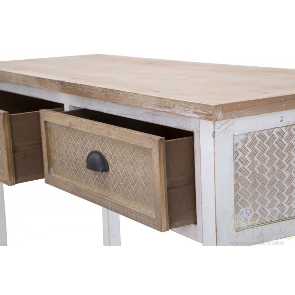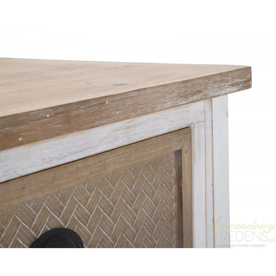 Pełne uroku meble do salonu, pokoju czy do jadalni od włoskiego producenta Mauro Ferretti urzekają wyjątkową, przyjemna dla oka kolorystyką i estetycznym wzornictwem. Meble w stylu prowansalskim to stylowe, wykonane z dbałością o detale elementy wyposażenia wnętrza. Konsola w stylu prowansalskim z kolekcji Marrakech z naszej oferty to bardzo atrakcyjny mebel wyposażony w półkę i dwie szuflady. Jej niepowtarzalny design wynika z kompozycji drewna jodłowego w dwóch kolorach: jasnobrązowym i białym.