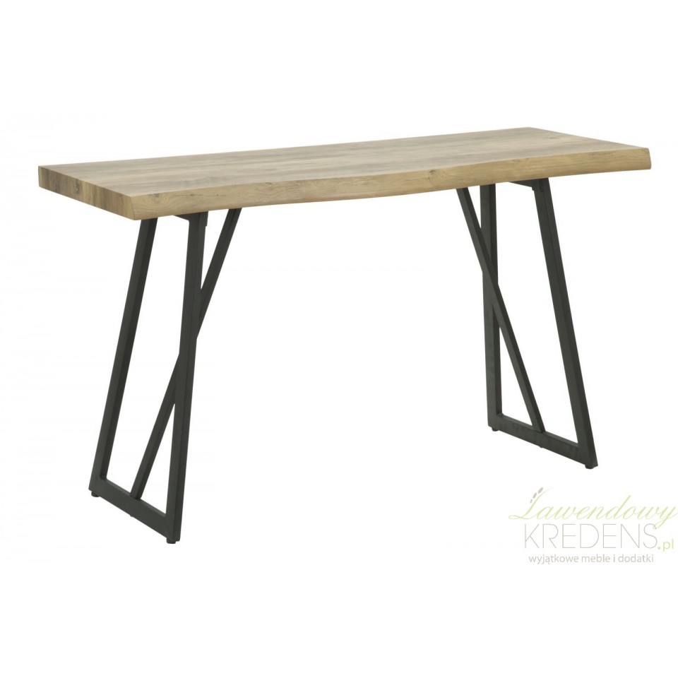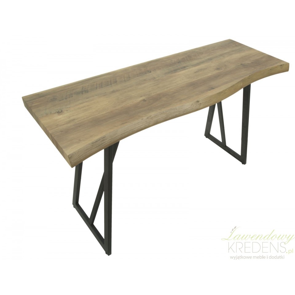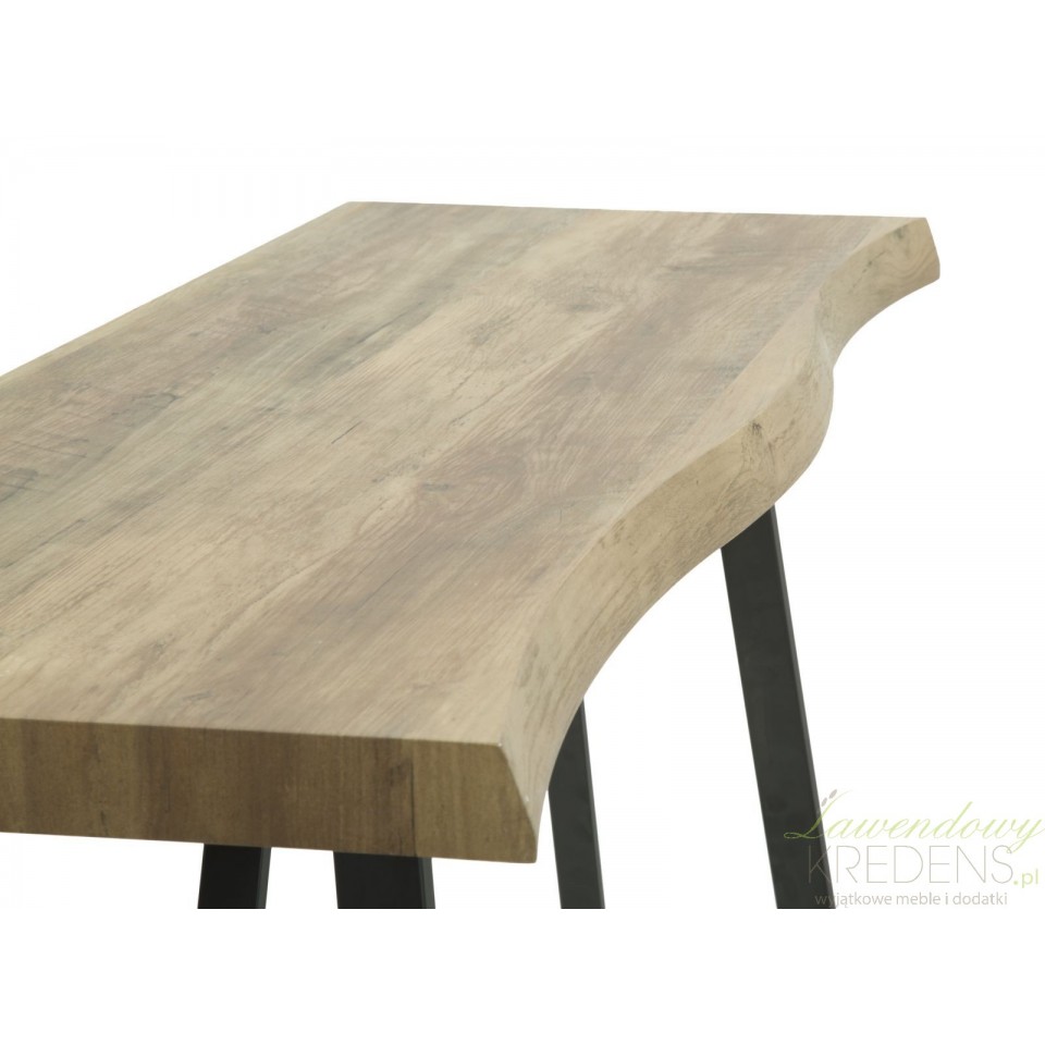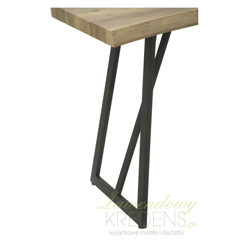 Konsola loft wykonana jest z połączenia smukłych nóg metalowych i blatu o strukturze drewna, dzięki czemu wygląda na lekki mebel dający ogromną swobodę przy tworzeniu aranżacji. Patrząc uważnie na zdjęcie dostrzeżesz lekkie zaokrąglenie linii blatu, co jest jedynym elementem dekoracyjnym tego mebla. Konsola loft sprawdzi się jako wolnostojący mebel jak również dodatkowe miejsce do eksponowania Twoich ulubionych dodatków (nie tylko tych w stylu loft!).