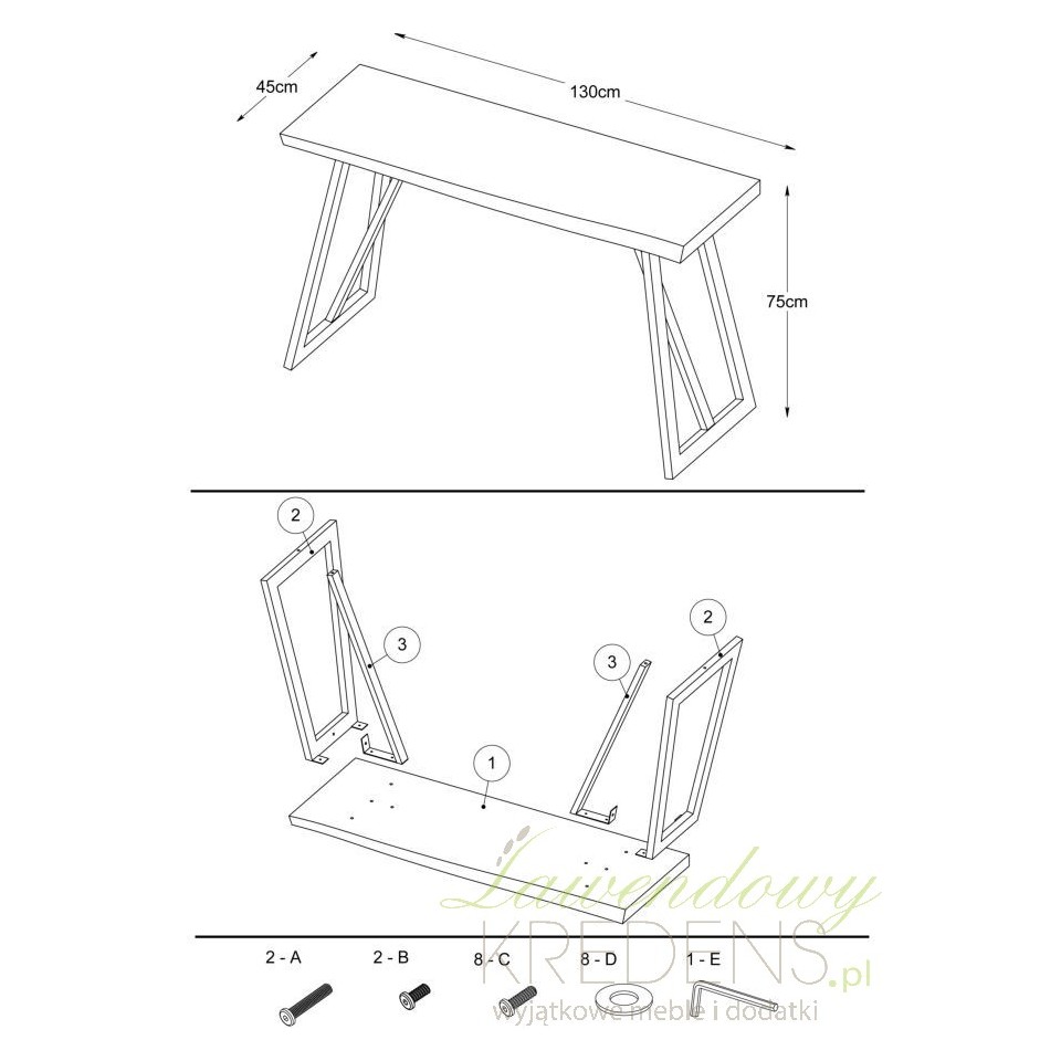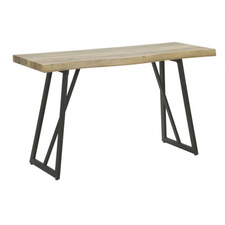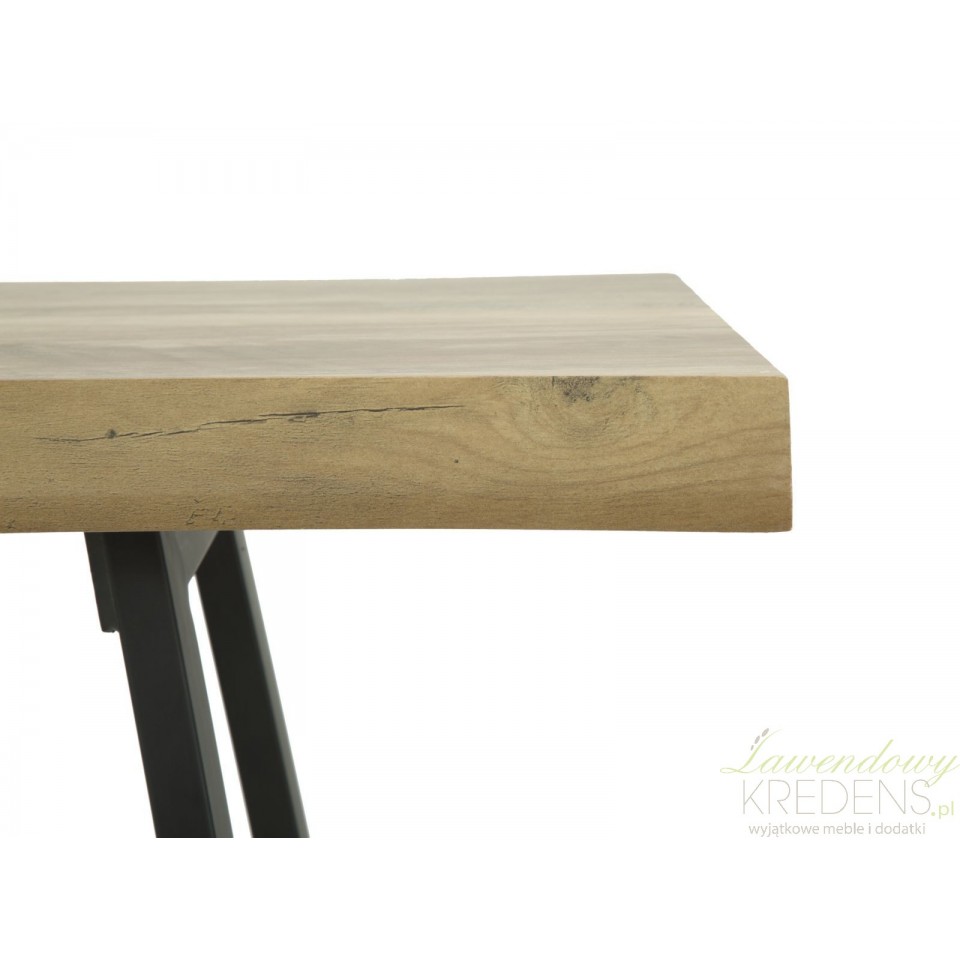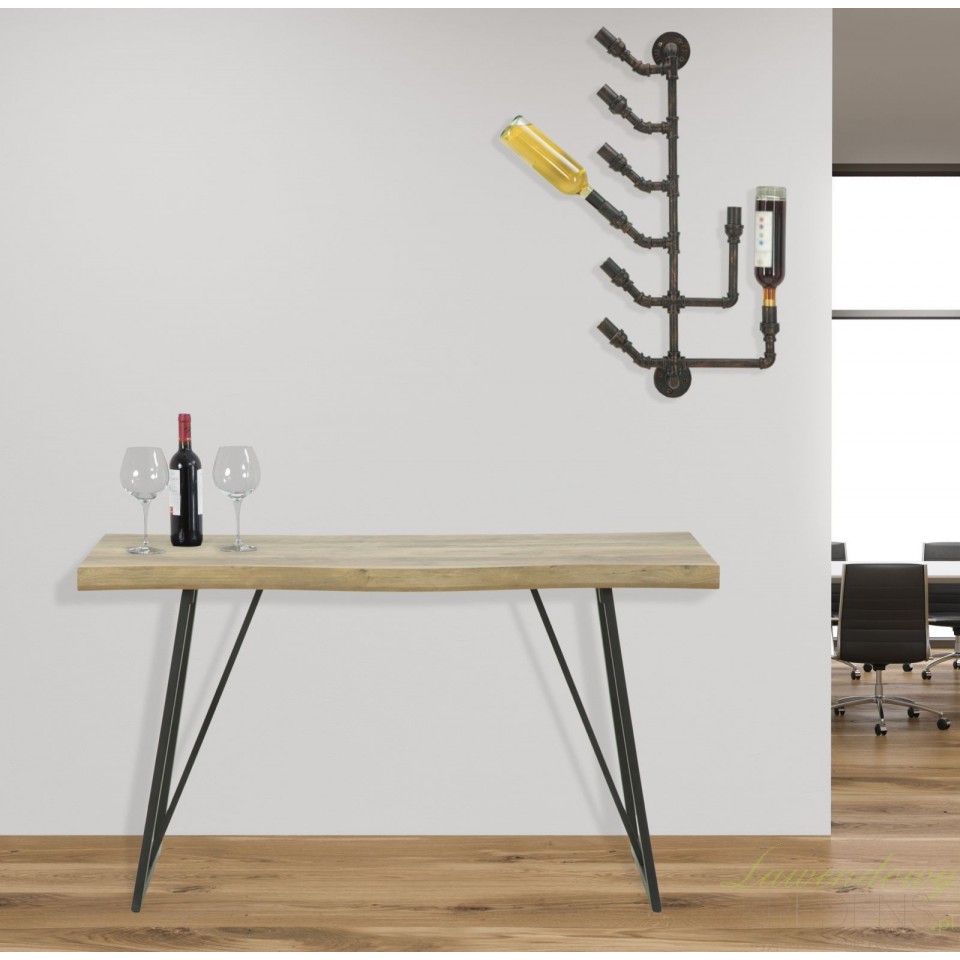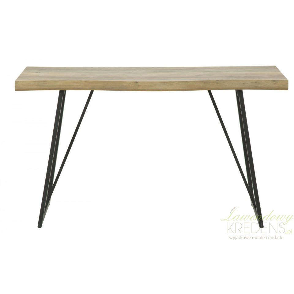 Konsola loft wykonana jest z połączenia smukłych nóg metalowych i blatu o strukturze drewna, dzięki czemu wygląda na lekki mebel dający ogromną swobodę przy tworzeniu aranżacji. Patrząc uważnie na zdjęcie dostrzeżesz lekkie zaokrąglenie linii blatu, co jest jedynym elementem dekoracyjnym tego mebla. Konsola loft sprawdzi się jako wolnostojący mebel jak również dodatkowe miejsce do eksponowania Twoich ulubionych dodatków (nie tylko tych w stylu loft!).