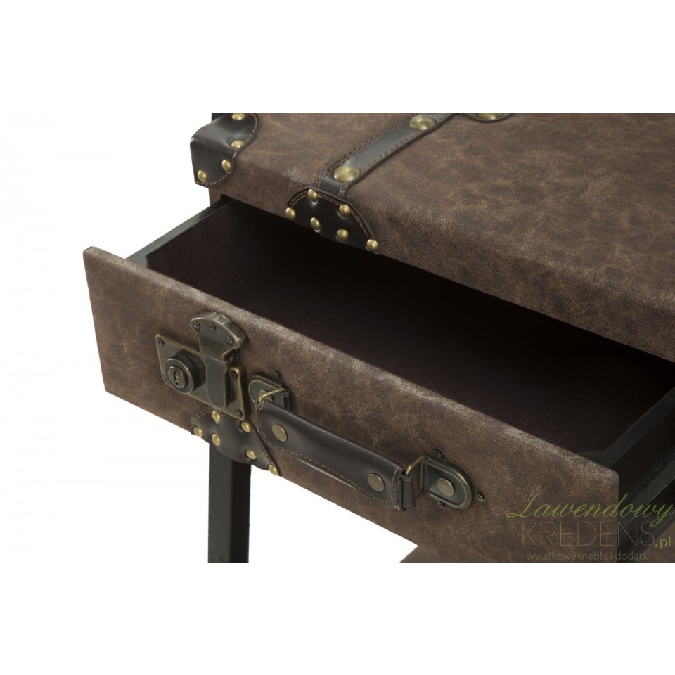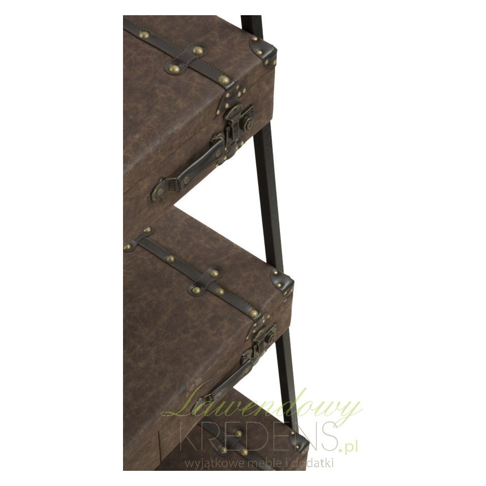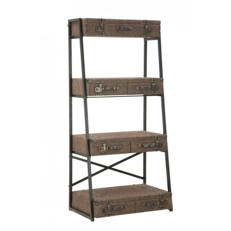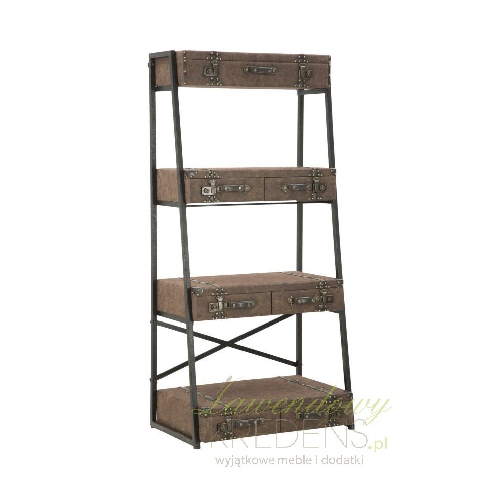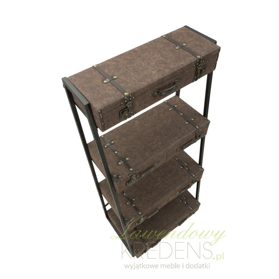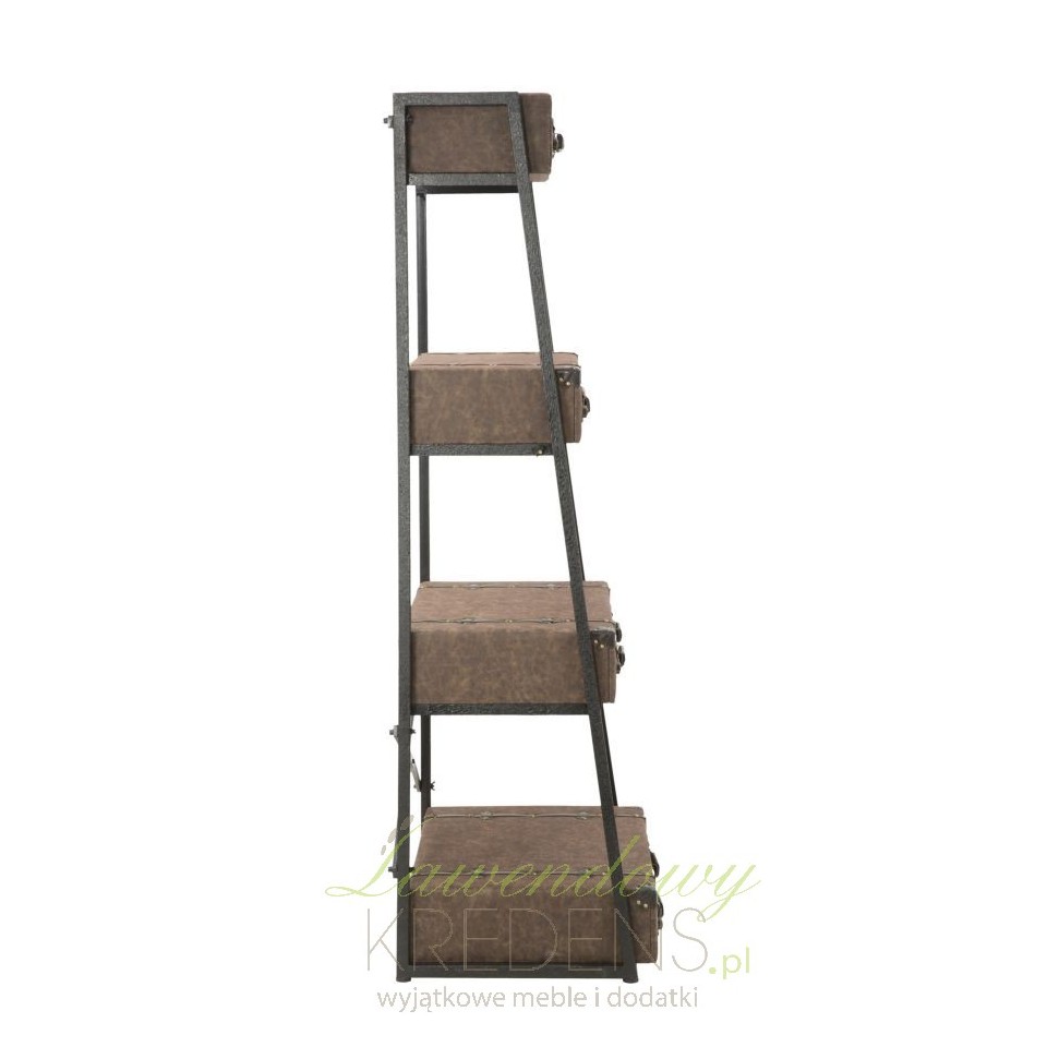 Meble Mauro Ferretti z kolekcji Travel doskonale nawiązują do swojej nazwy, poprzez wykorzystanie motywu walizki przy tworzeniu każdego z tych elementów wyposażenia wnętrz. Prezentowany regał loftowy składa się z czterech walizek, które jednocześnie pełnią rolę półek i szuflad. Walizki w ciemnym kolorze brązu wykonane są z ekoskóry i ozdobione metalowymi uchwytami oraz napami. Szukasz mebla do wnętrza artysty? Znajdziesz go w naszym sklepie!