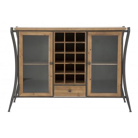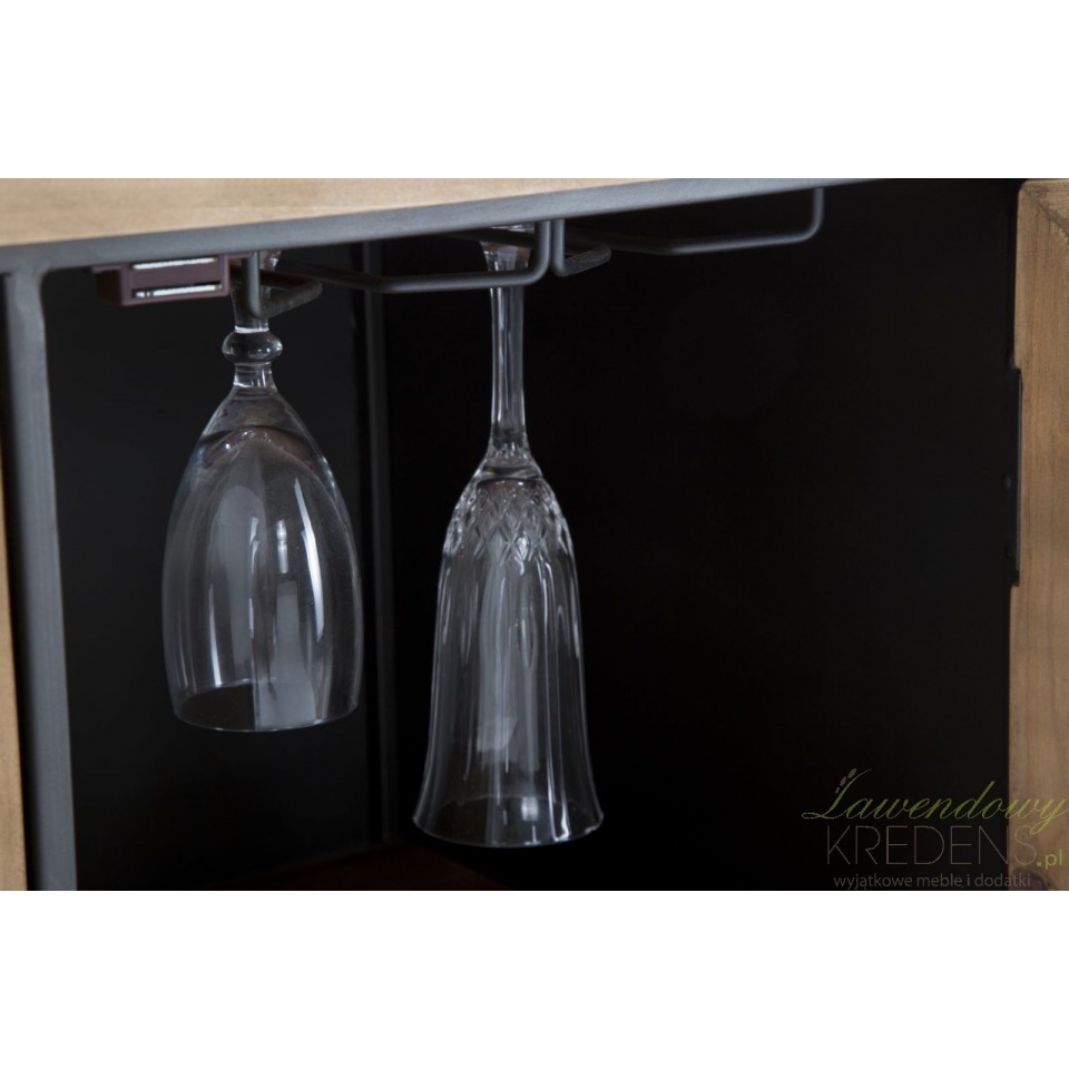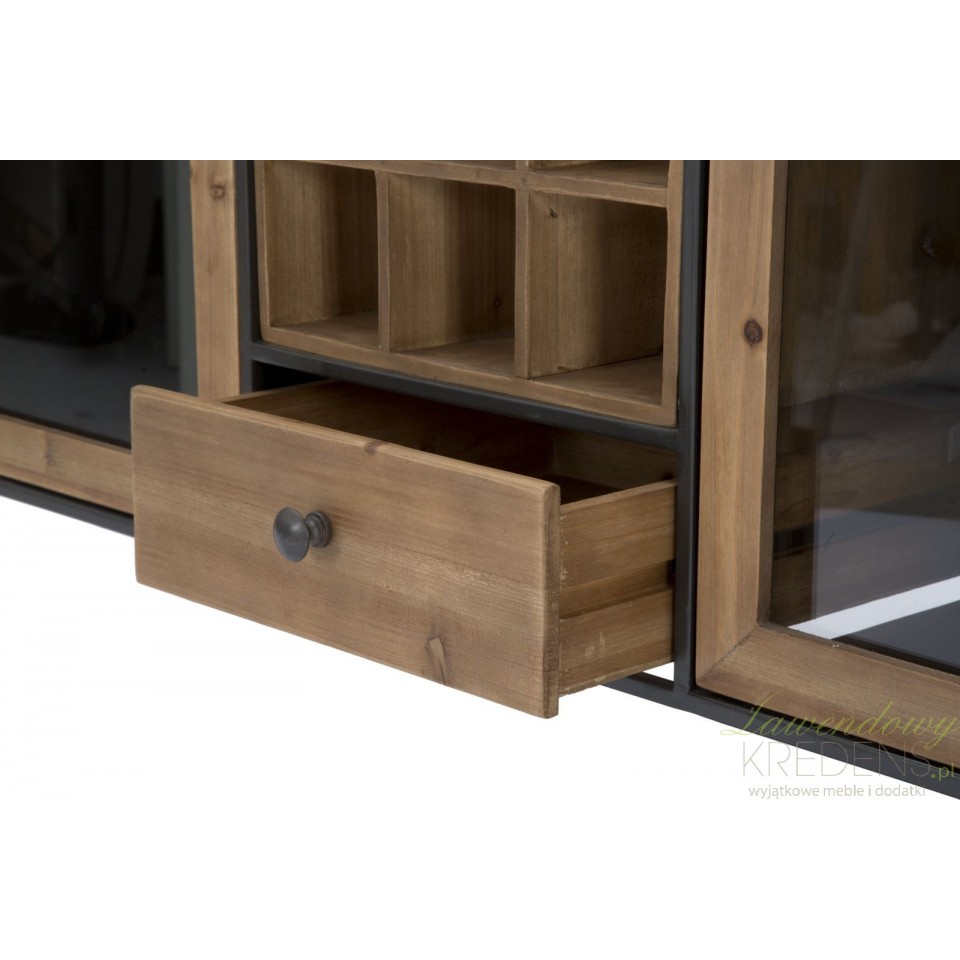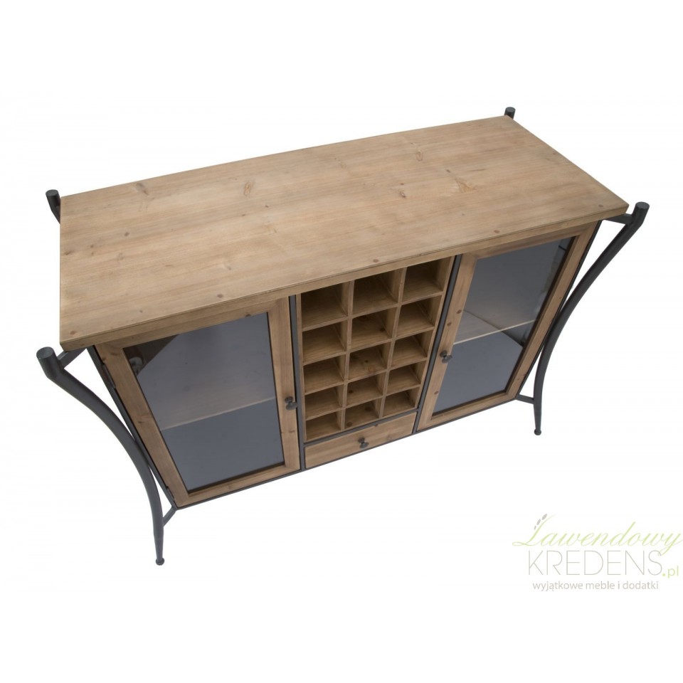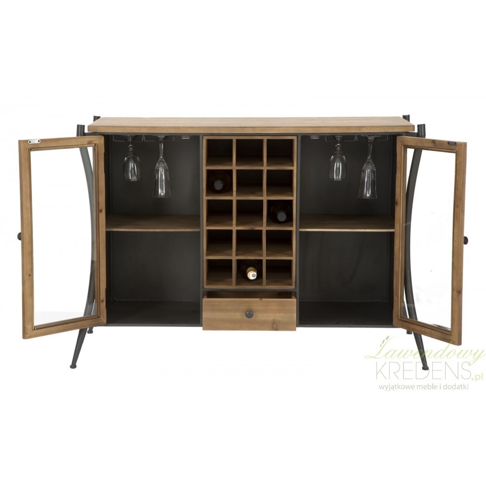 Ta przepiękna komoda na wino wykonana z drewna to mebel pojemny i praktyczny. Mimo, iż jest to szeroka komoda, świetnie wpasuje się w przestrzeń każdej kuchni, jadalni i salonu. Komoda Loft z kolekcji Glagow posiada dwie zamykane, przeszklone szafki i wąskie półki na butelki. Komoda Loft to najlepsze rozwiązanie dla osób ceniących porządek, design i doskonałą organizację.