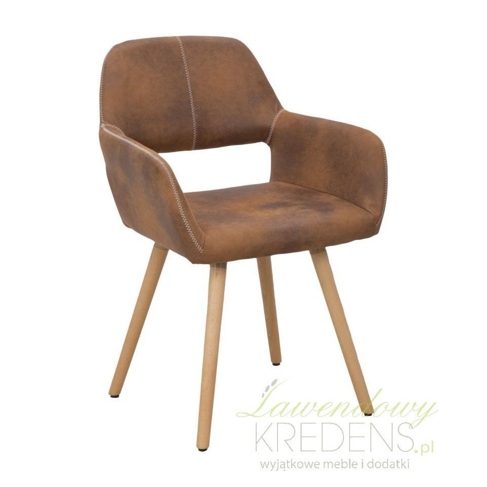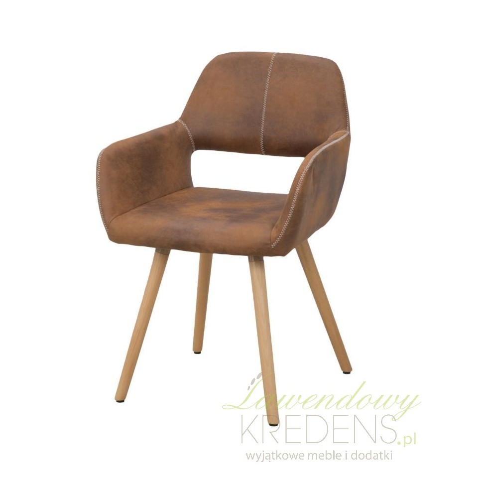 Fotelowe krzesło z podłokietnikami prezentuje się niezwykle naturalnie dzięki czemu może wzmocnić i podkreślić charakter wnętrz industrialnych i skandynawskich.