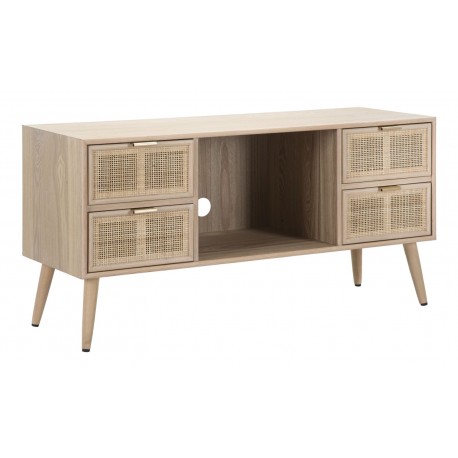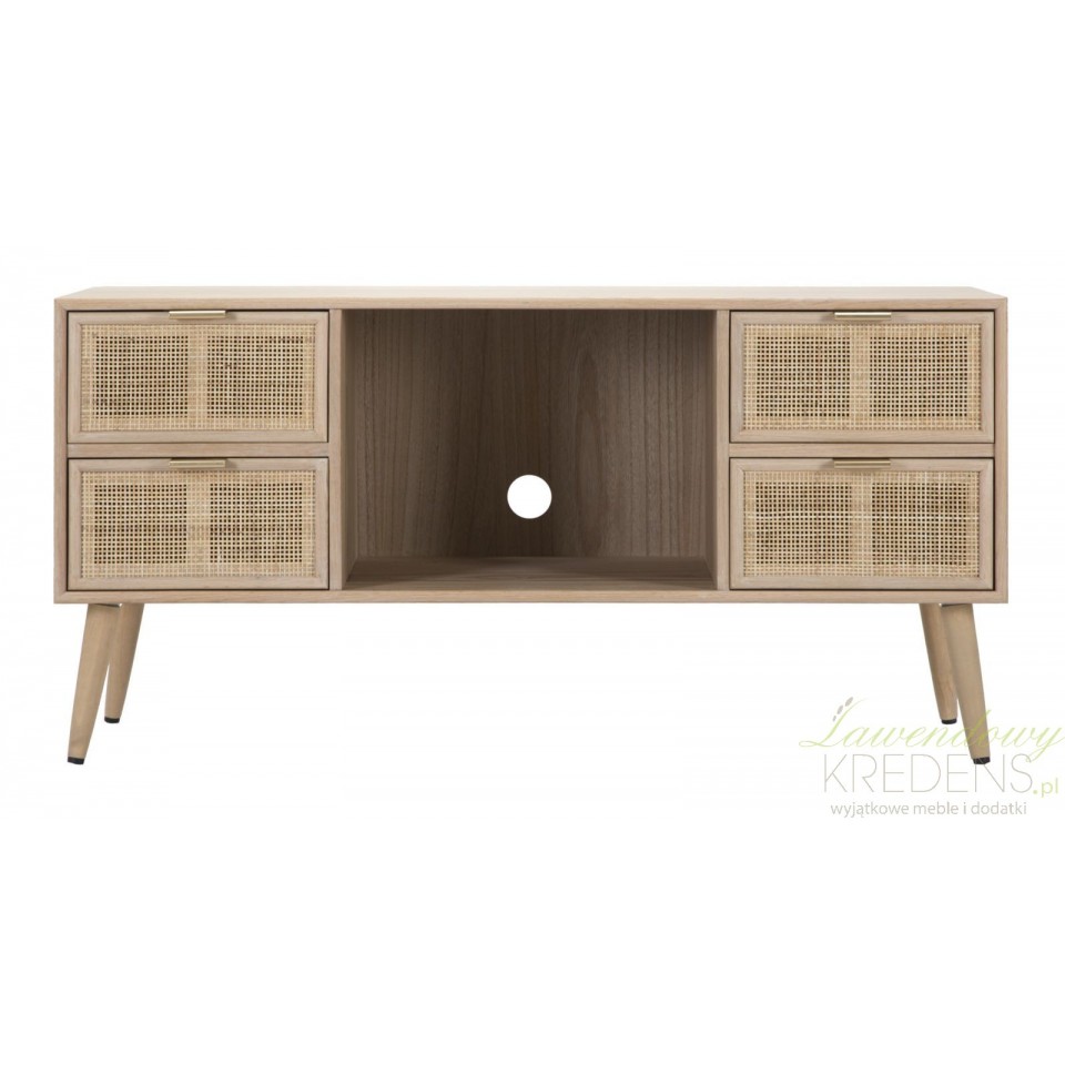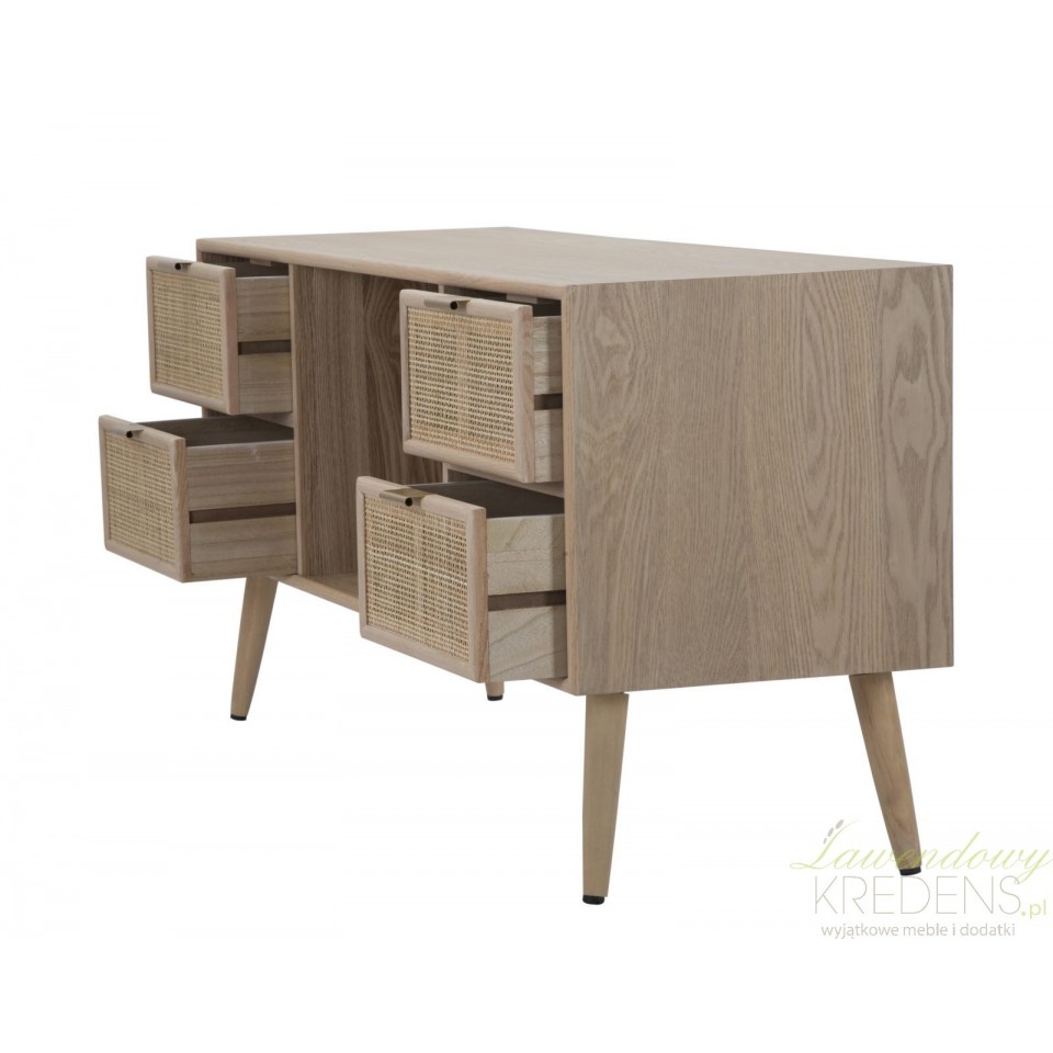 Meble w stylu skandynawskim wielu osobom kojarzą się z surową, mało wyrazistą formą - nic bardziej mylnego! Wystarczy spojrzeć na szafki rtv z kolekcji Vienna, które stanowią połączenie praktyczności z naturalnością. Oferowana szafka w stylu skandynawskim z czterema mniejszymi szafkami i półką wewnątrz sprawi, że salon stanie się ciepły, przytulny i klimatyczny. Połączenie subtelnego koloru brązu z surowością naturalnego drewna to bez wątpienia świetny wybór!