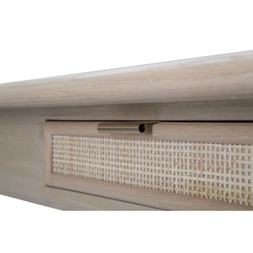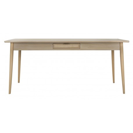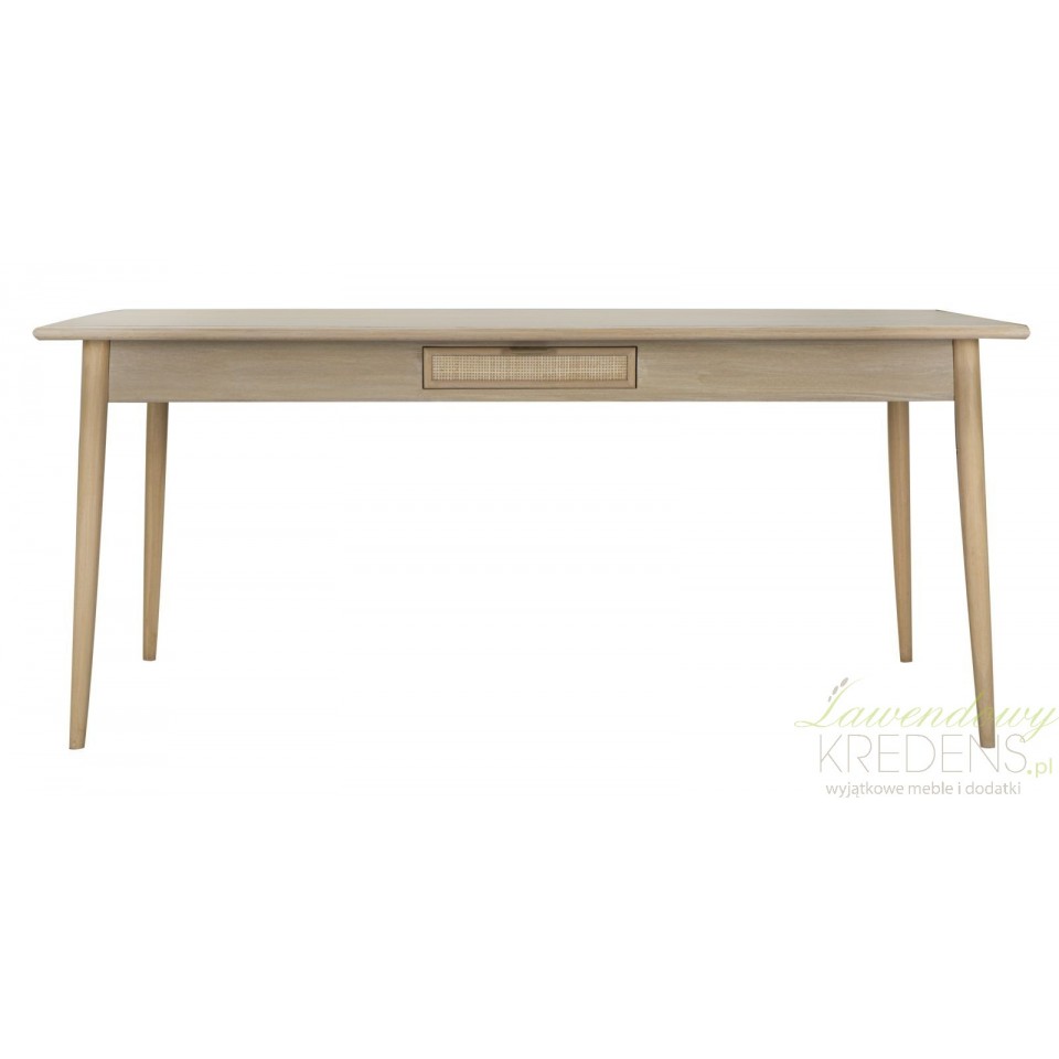 Stół w stylu skandynawskim z kolekcji Vienna będzie doskonałym rozwiązaniem aranżacyjnym przestrzeni zainspirowanej naturalnością. Delikatne rysy słojów na jego powierzchni w połączeniu z minimalistyczną formą tworzą mebel idealny nie tylko do przestrzeni skandynawskich. Dodatkową funkcjonalność zapewnia mu pojedyncza, ale bardzo pojemna szufladka zamontowana w cokole pod blatem. Marka Mauro Ferretti postanowiła ozdobić front szufladki za pomocą drobnej siateczki.
