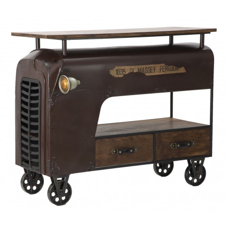 Brązowa konsola w stylu industrialnym ma za zadanie zdobić miejsce, w którym jest ustawiona, a ponadto dodaje wnętrzu funkcjonalności.