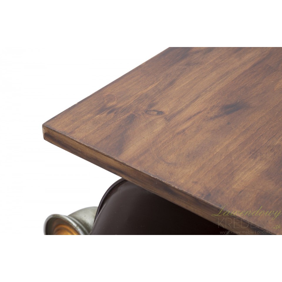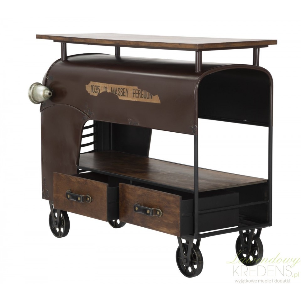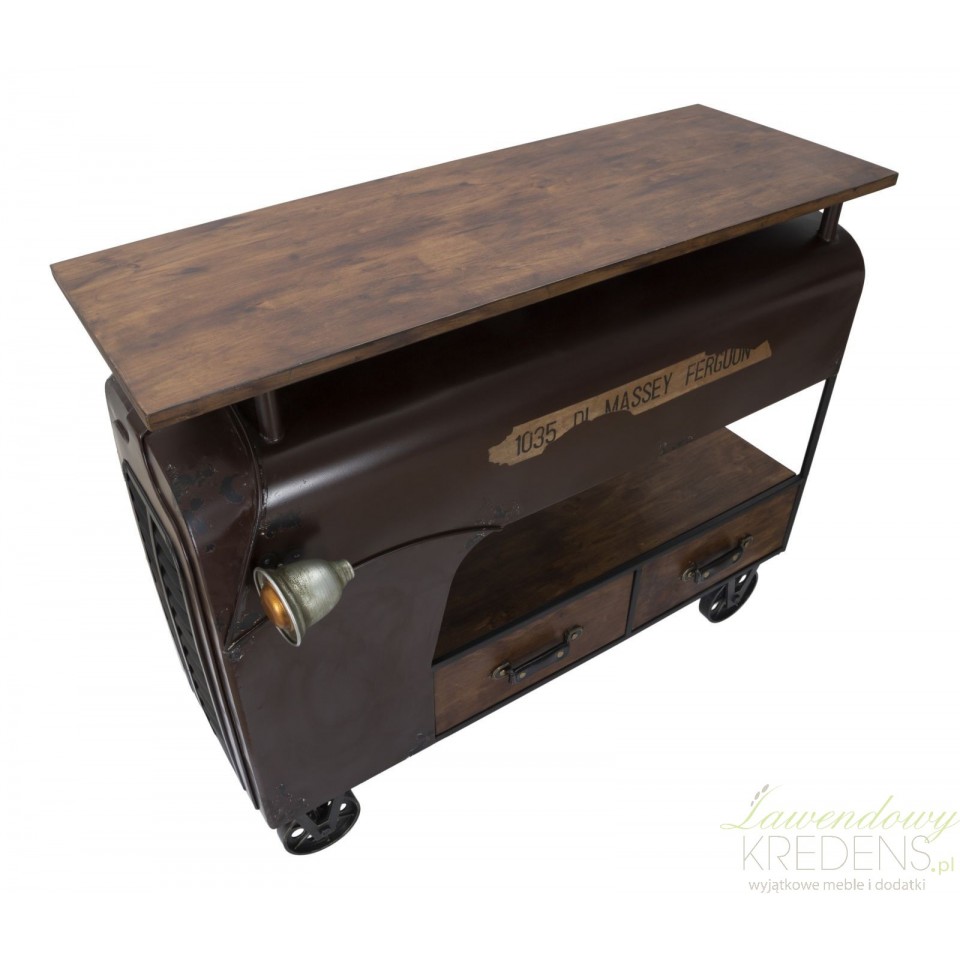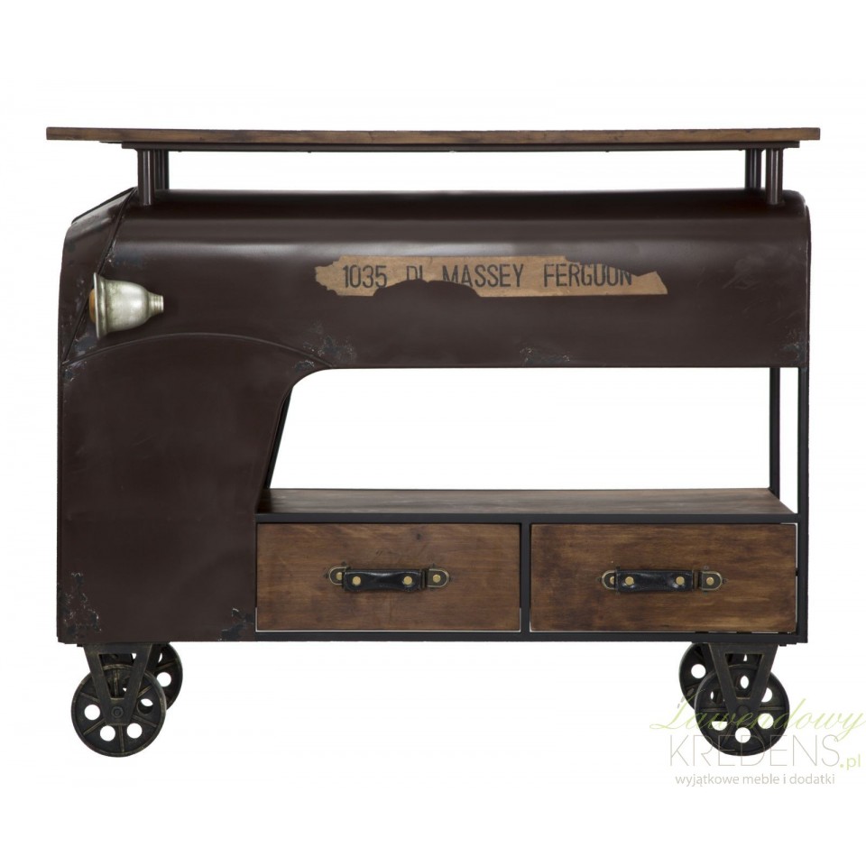 Mniejsza od stołu, większa niż ława, konsola w stylu industrialnym z kolekcji Old Style ma nieskończenie wiele zalet. Jest kompaktowa i funkcjonalna, a dzięki ciekawym kształtom na wzór lokomotywy ozdobi każde miejsce w Twoim domu. Doskonale wiemy, że przedmioty codziennego użytku i dekoracje zajmują w domach każda wolna przestrzeń, a czasami potrafią nawet długie tygodnie zalegać tam gdzie nie powinny. Metalowa konsola w stylu industrialnym z szufladami i półkami pozwoli Ci zapanować nad nieporządkiem. Konsola z napisami to mebel, który wniesie do aranżacji styl i szyk.
