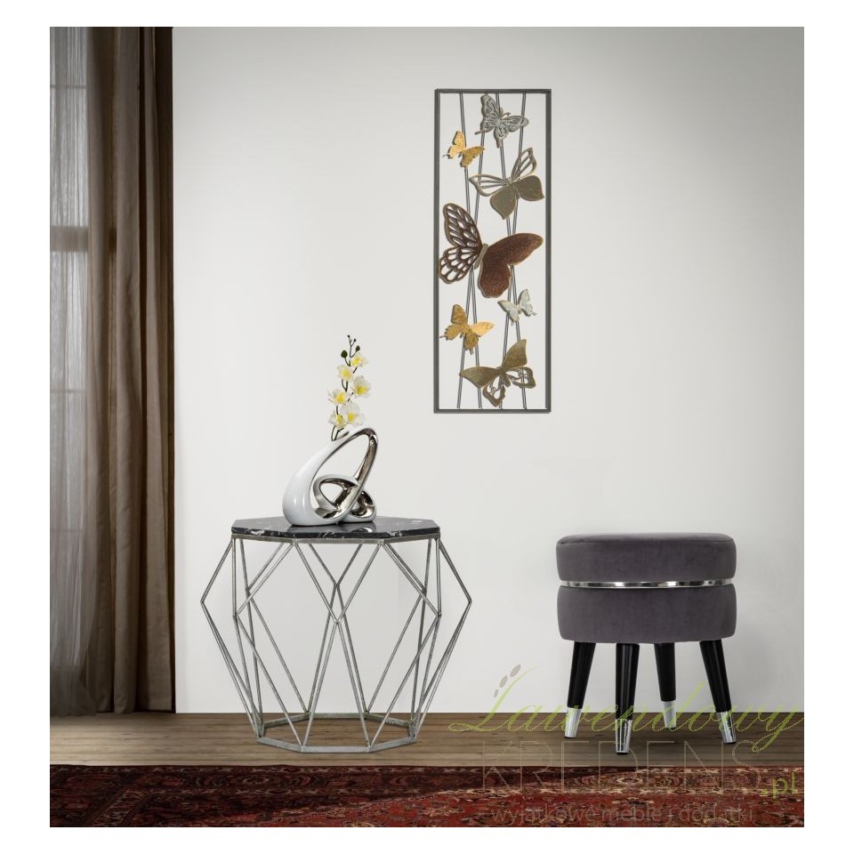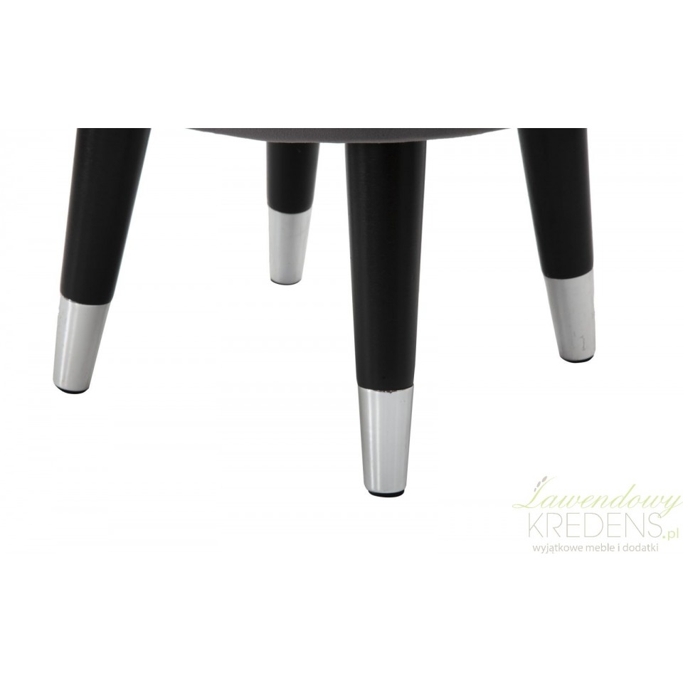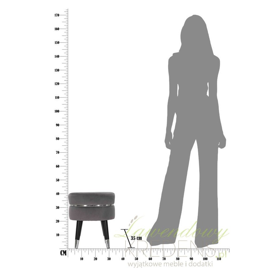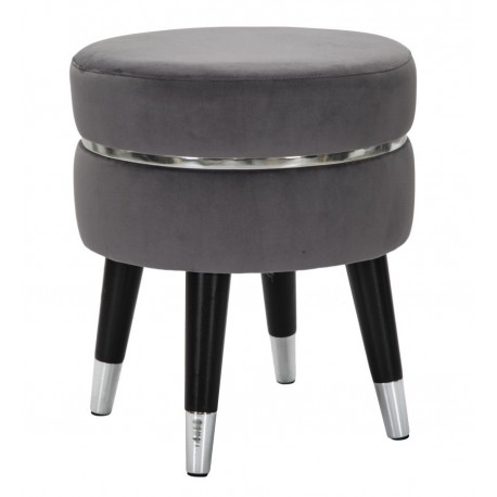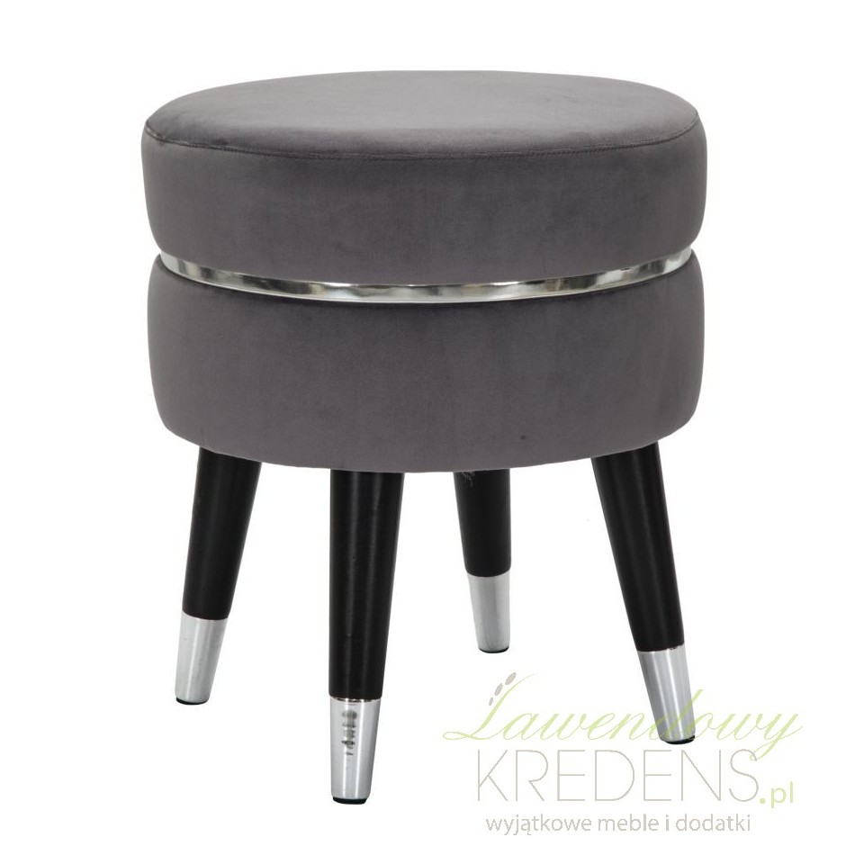 Stołek glamour ma proste, lekko rozchylone nogi drewniane malowane czarnym lakierem, zakończone srebrnymi okuciami. Okrągłe, wysokie siedzisko w kolorze czarnym ściśnięte jest w połowie wysokości metalowym pierścieniem i tapicerowane welurową tkaniną. Stołki w stylu glamour tego typu będą doskonale korespondowały z wnętrzami eleganckimi, barokowymi i romantycznymi. Tak wiele możliwości aranżacyjnych zapewnią Wam tylko meble od Mauro Ferretti!