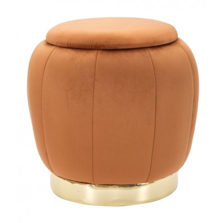 Pufa ze schowkiem z podłużnymi przeszyciami jest okrągła i pomarańczowa. Złota podstawa metalowa dodaje jej elegancji, a materiał przypominający w dotyku aksamit sprawia, że pufa uroczo prezentuje się wśród innych, tapicerowanych mebli. Pufa glamour to kształtny mebel, podobnie jak pozostałe meble glamour z kolekcji Vienna.