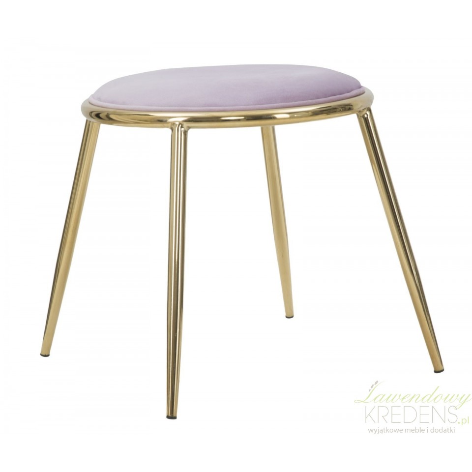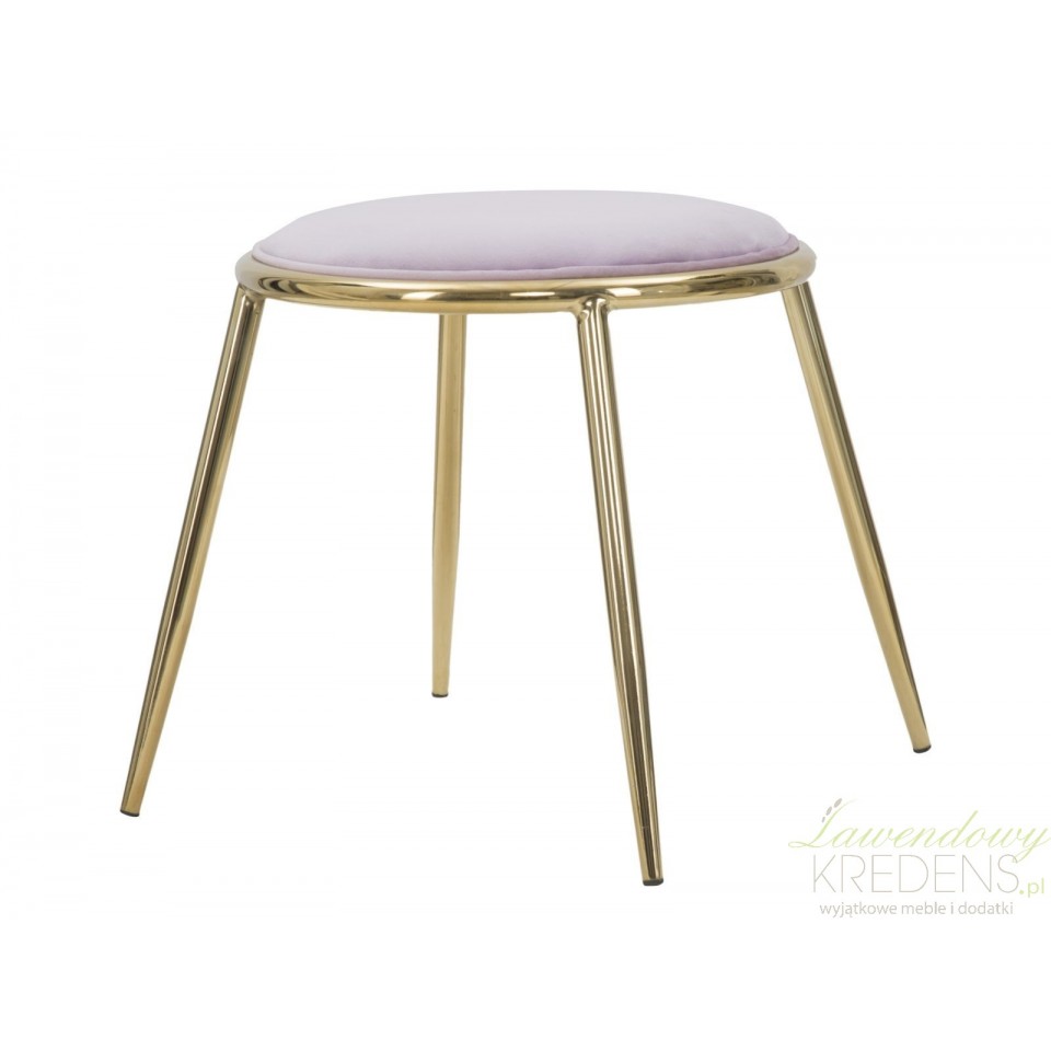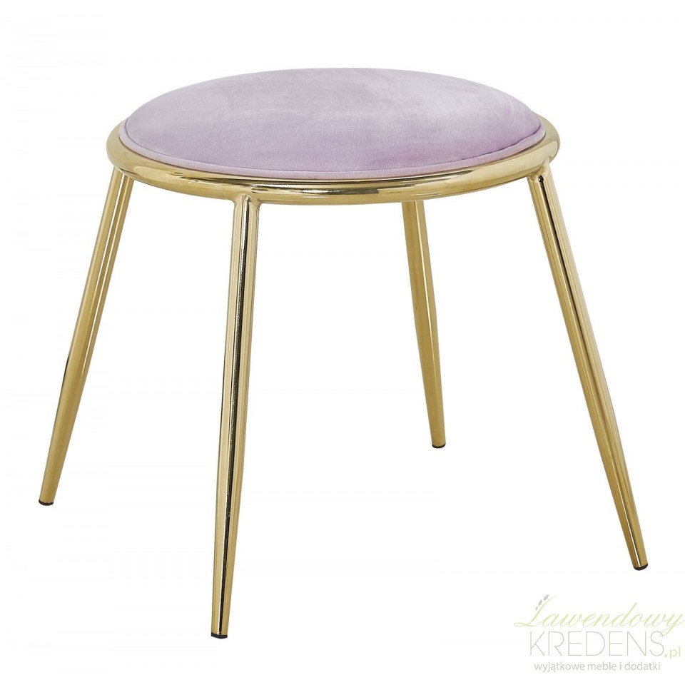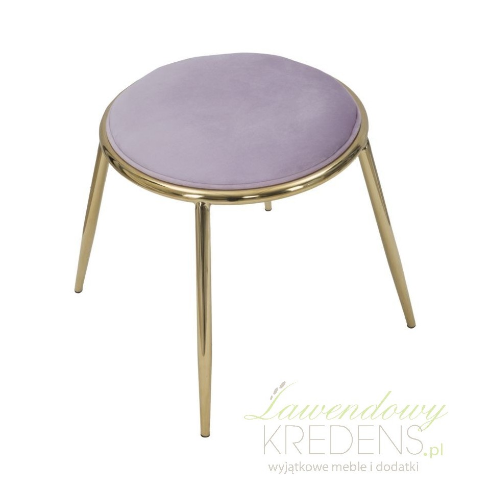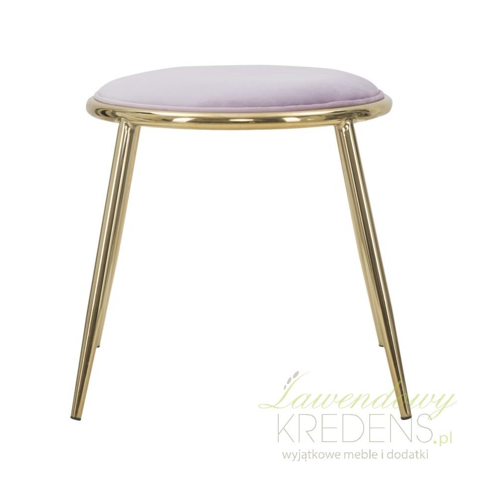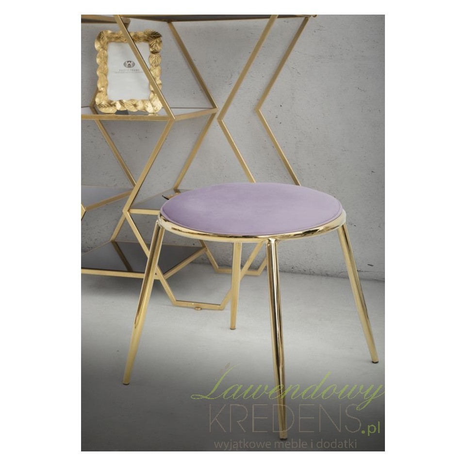 Złoty stołek Glam Emily to mebel z charakterem, który zapewniają mu proste, wręcz minimalistyczne kształty i ciekawy dodatek w postaci fioletowego siedziska.