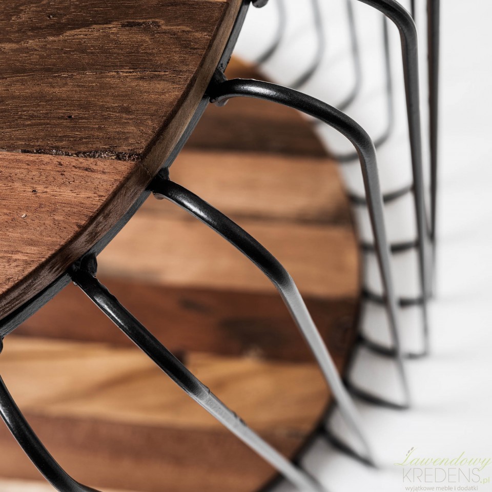 Trend aranżacji wnętrz w stylu industrialnym powraca, a mieszanie tego stylu z nowoczesnymi formami jest aktualnie bardzo popularne. Dzięki okrągłemu blatowi z drewna z recyklingu, stolik loftowy Arca jest pełen uroku. Aby go rozjaśnić zastosuj białe lub jasnoszare dodatki. Meble loft wzbogacą Twój salon elegancją i pięknem dzięki oryginalnemu wzornictwu oraz wytrzymałym materiałom. Ten ładny stolik sprawdzi się też jako stolik nocny – będzie dobrze komponował się z meblami ze skóry, drewna lub tkaniny.