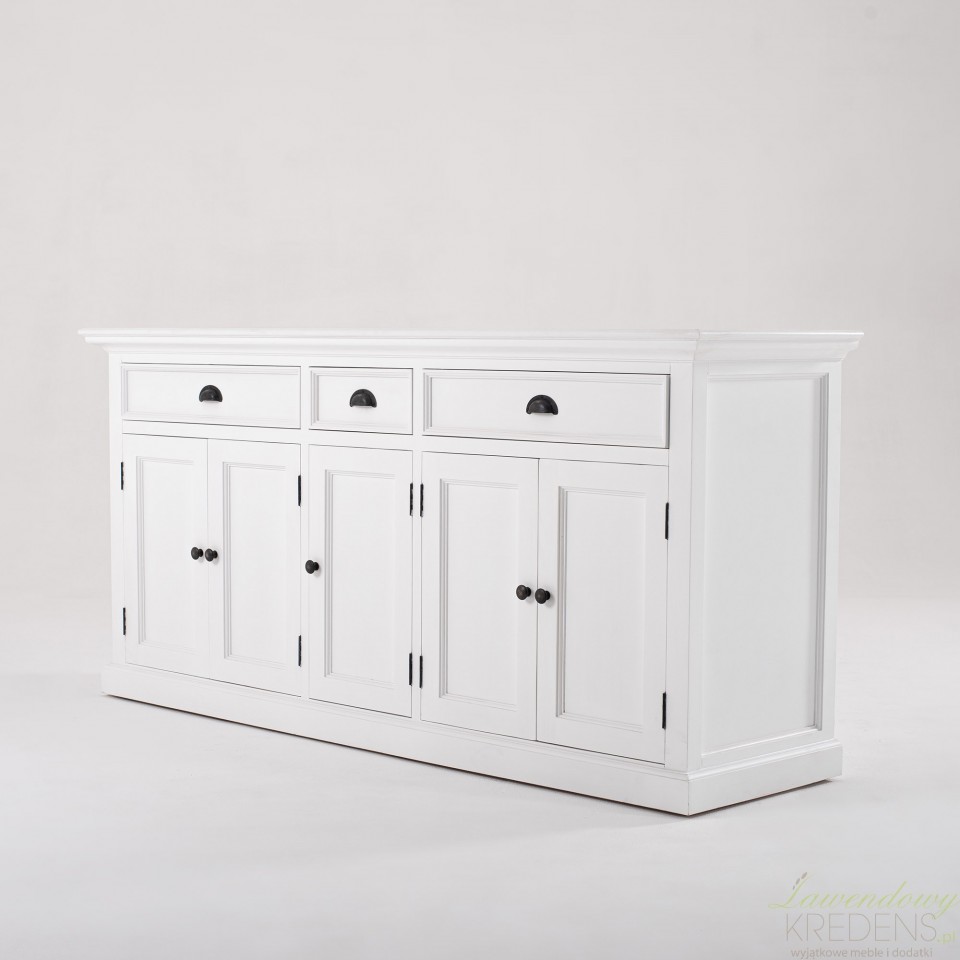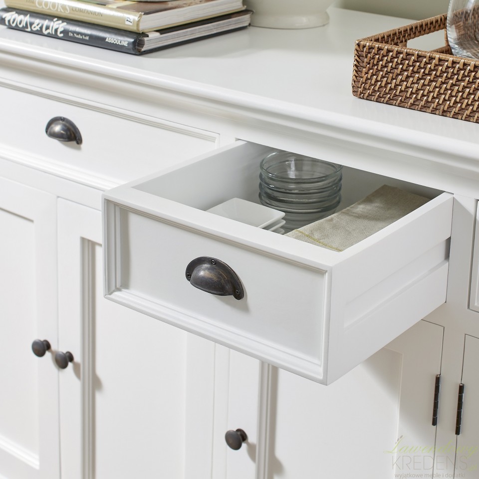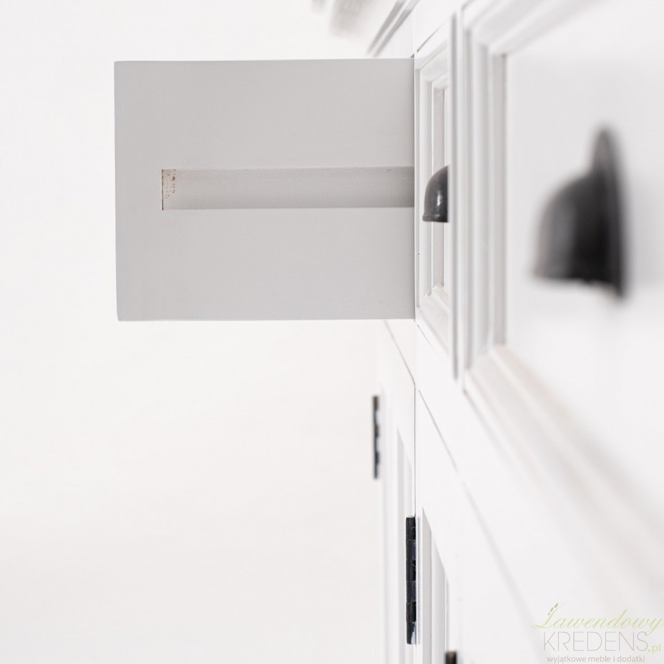 Szeroka komoda w stylu prowansalskim z powodzeniem może zastąpić kuchenną wyspę. Wybierz ją oraz inne meble z kolekcji Lumi i urządź przestrzeń jasną, klimatyczną i praktyczną!