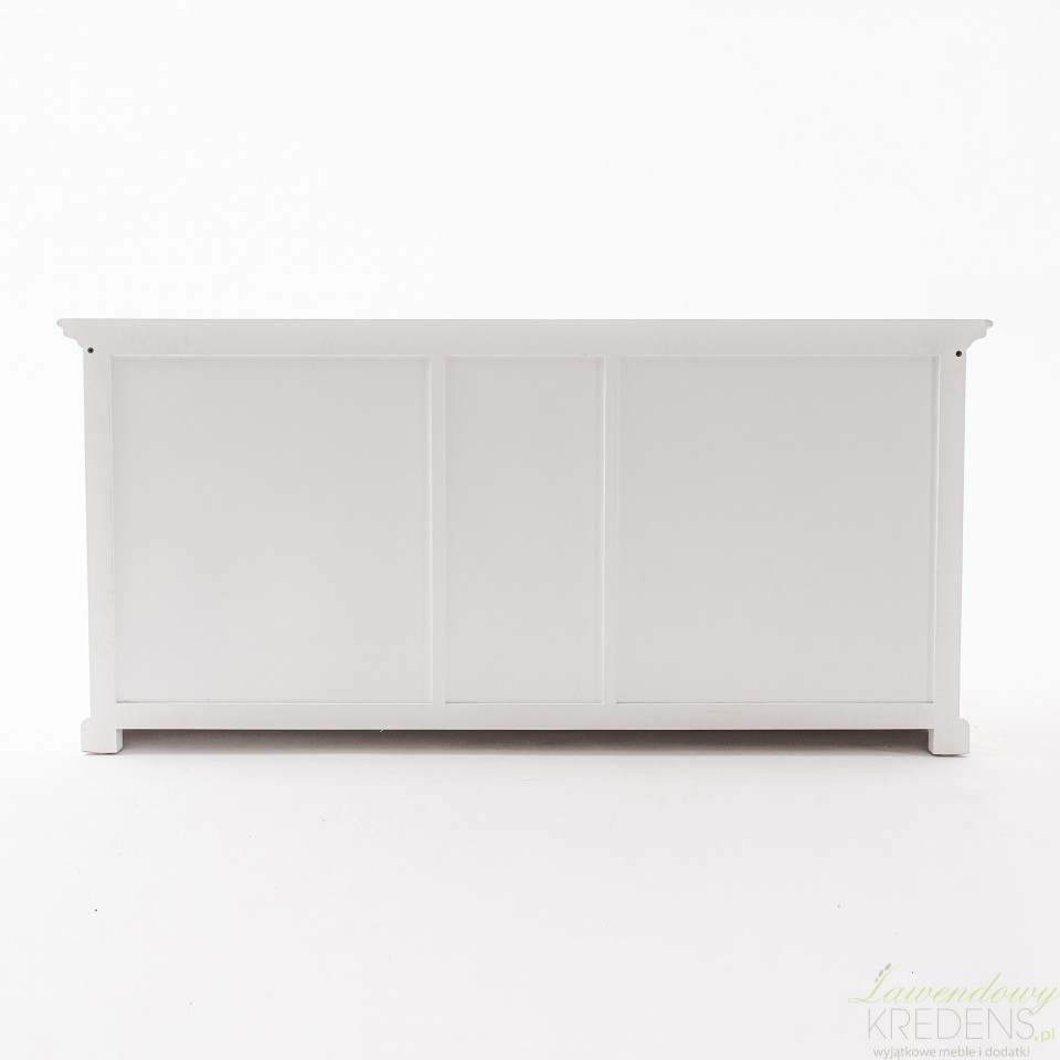 Biały kredens w stylu prowansalskim z kolekcji Lumi jest idealny do wyeksponowania pięknej porcelany lub książek, a ze względu na swój duży rozmiar wygląda dosknale w salonach i jadalniach. Wykonany z drewna i wykończony w kolorze francuskiej bieli, kredens prowansalski przywoła delikatną elegancję w Twoim domu. Wygląda wspaniale z pozostałymi meblami z kolekcji Lumi.