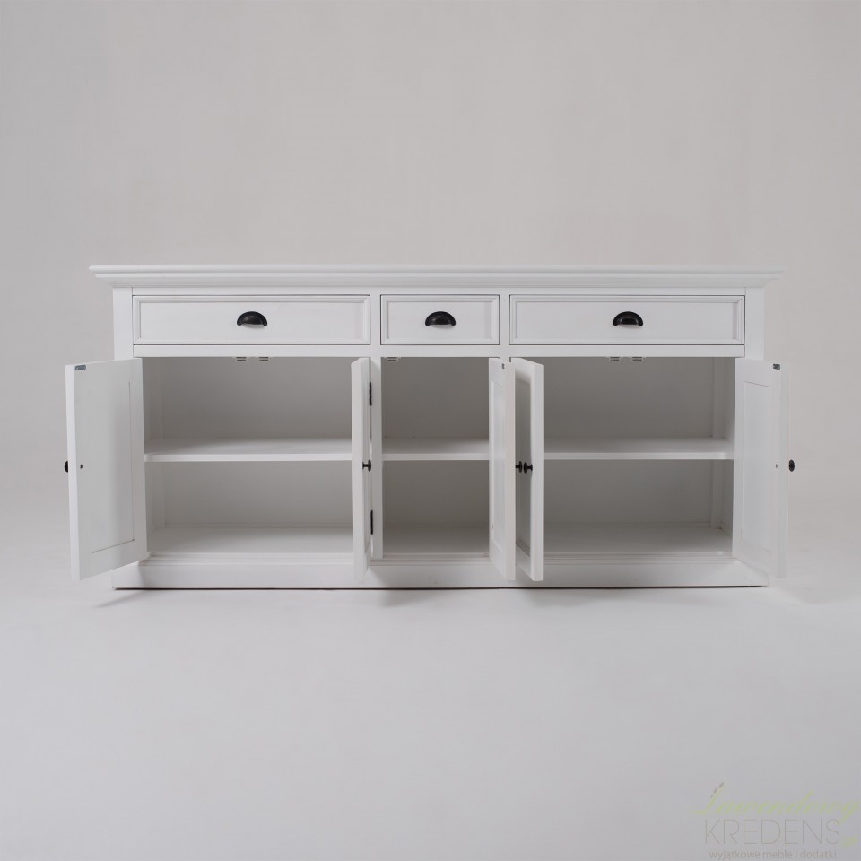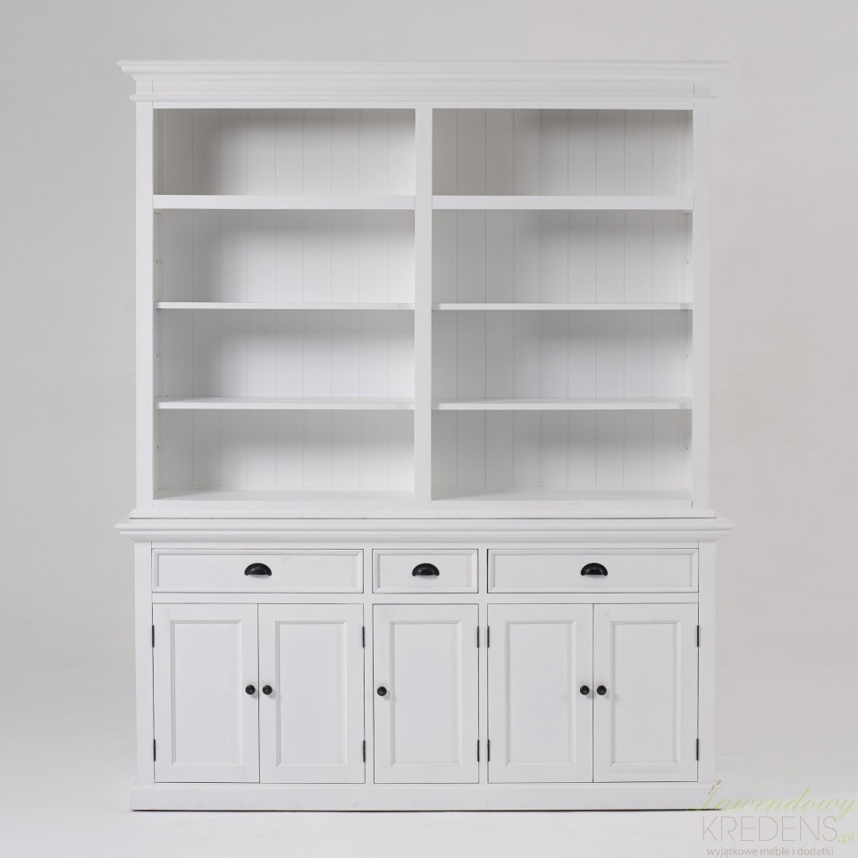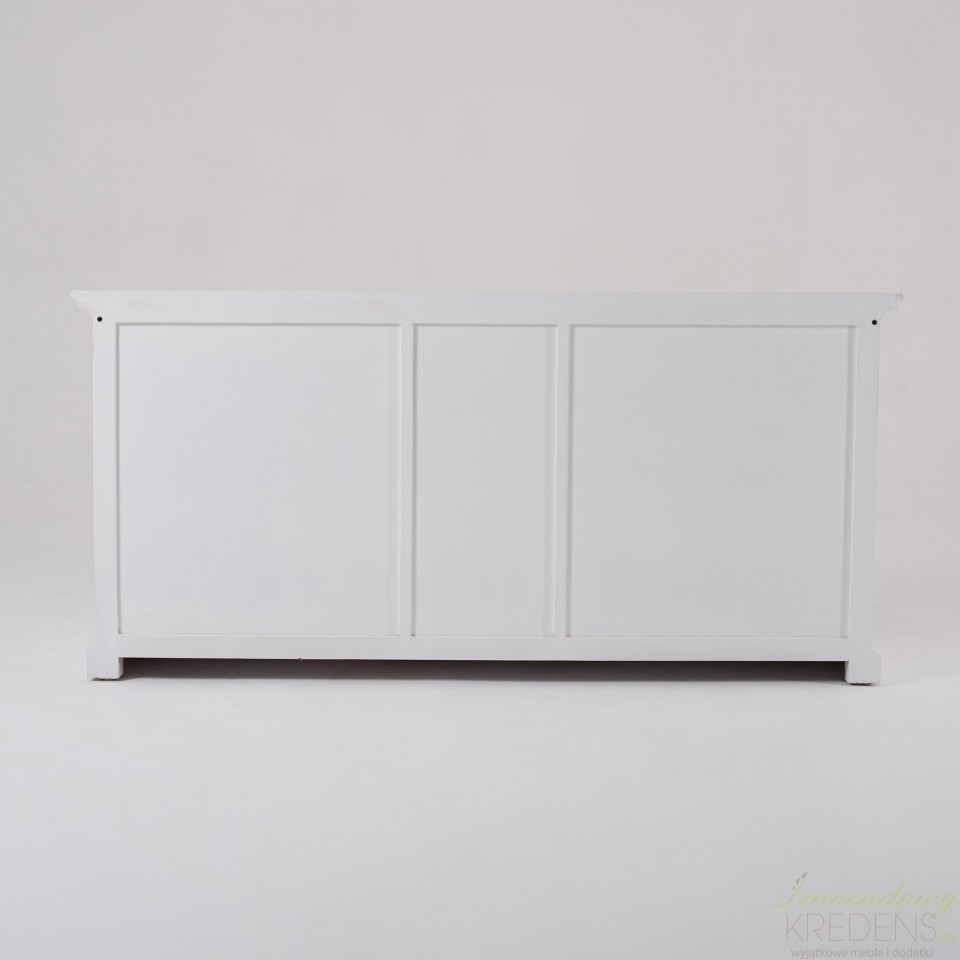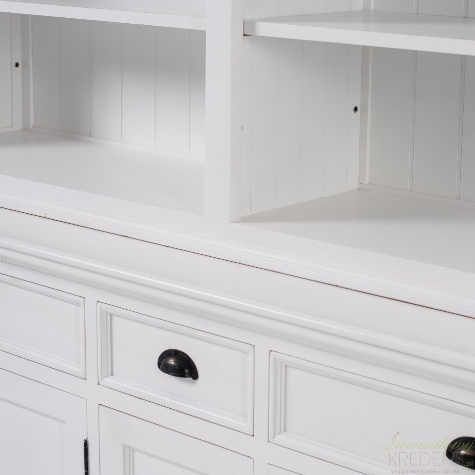 Biały kredens w stylu prowansalskim zachywca elegancką formą i funkcjonalnością. Składa się z pojemnych szafek i szuflad oraz półek ułożonych w dwóch rzędach. Kredens prowansalski z kolekcji Lumi, dzięki klasycznej, białej kolorystyce z łatwością dopasujesz do pozostałych mebli prowansalskich. Zwróć uwagę na solidne wykończenie i detale takie jak metalowe uchywty. Ten mebel robi wrażenie!