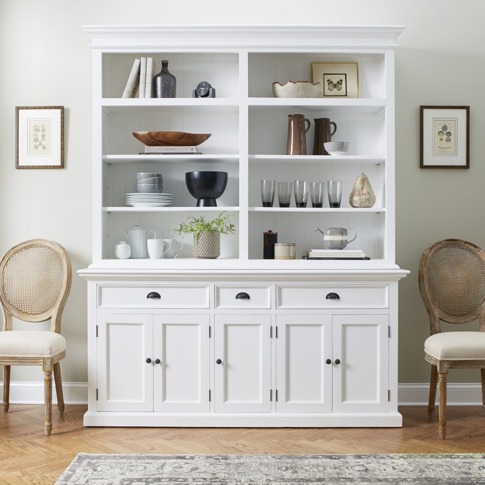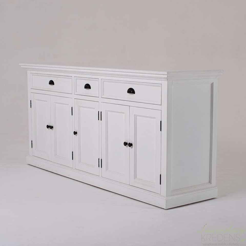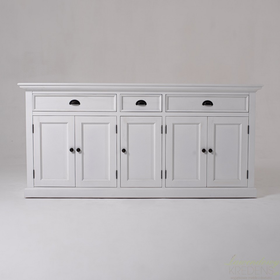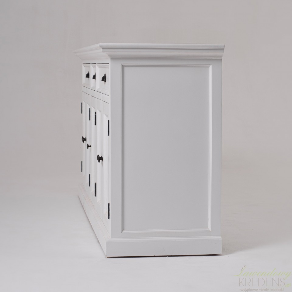 Biały kredens w stylu prowansalskim zachywca elegancką formą i funkcjonalnością. Składa się z pojemnych szafek i szuflad oraz półek ułożonych w dwóch rzędach. Kredens prowansalski z kolekcji Lumi, dzięki klasycznej, białej kolorystyce z łatwością dopasujesz do pozostałych mebli prowansalskich. Zwróć uwagę na solidne wykończenie i detale takie jak metalowe uchywty. Ten mebel robi wrażenie!