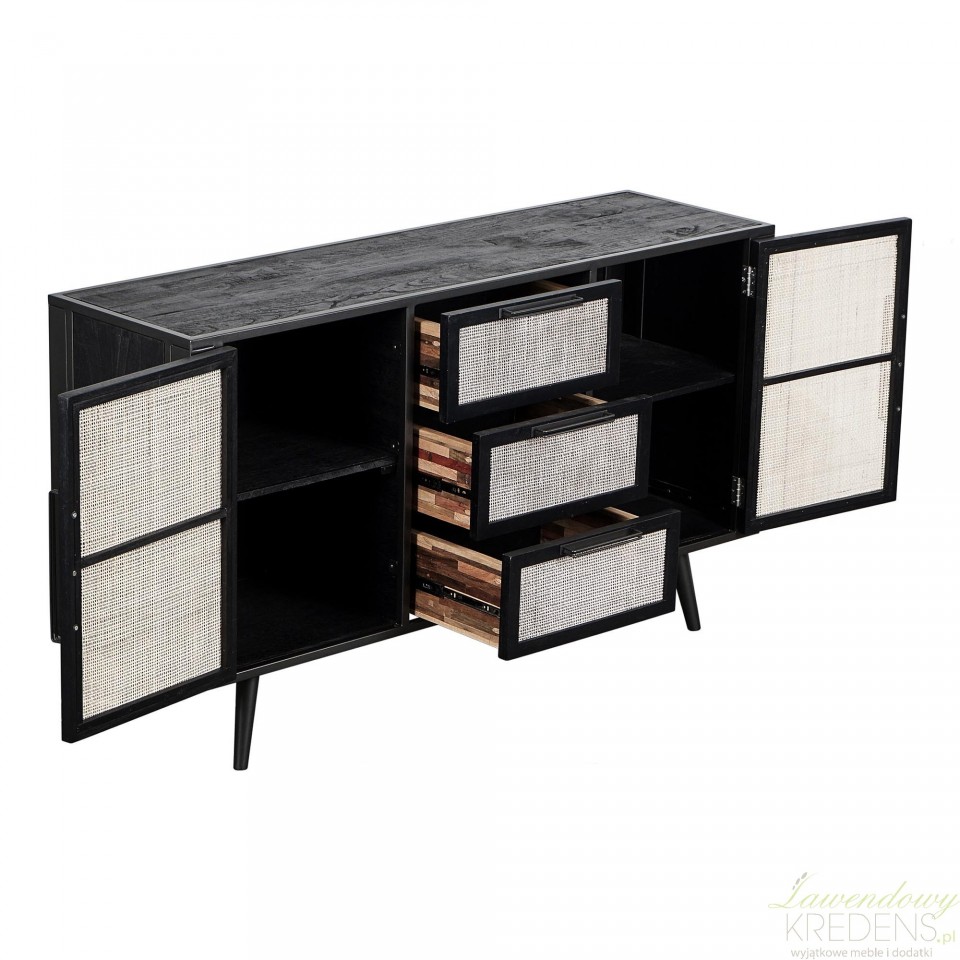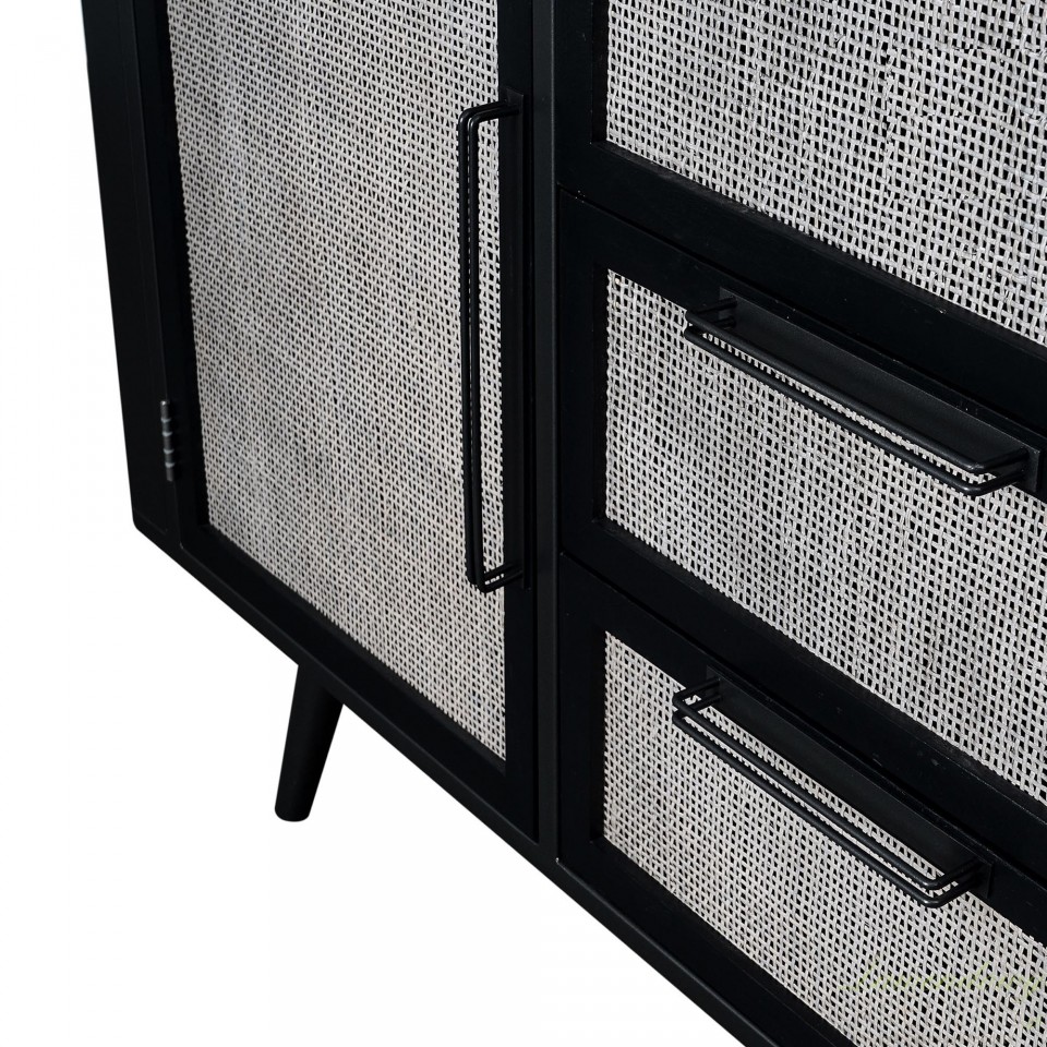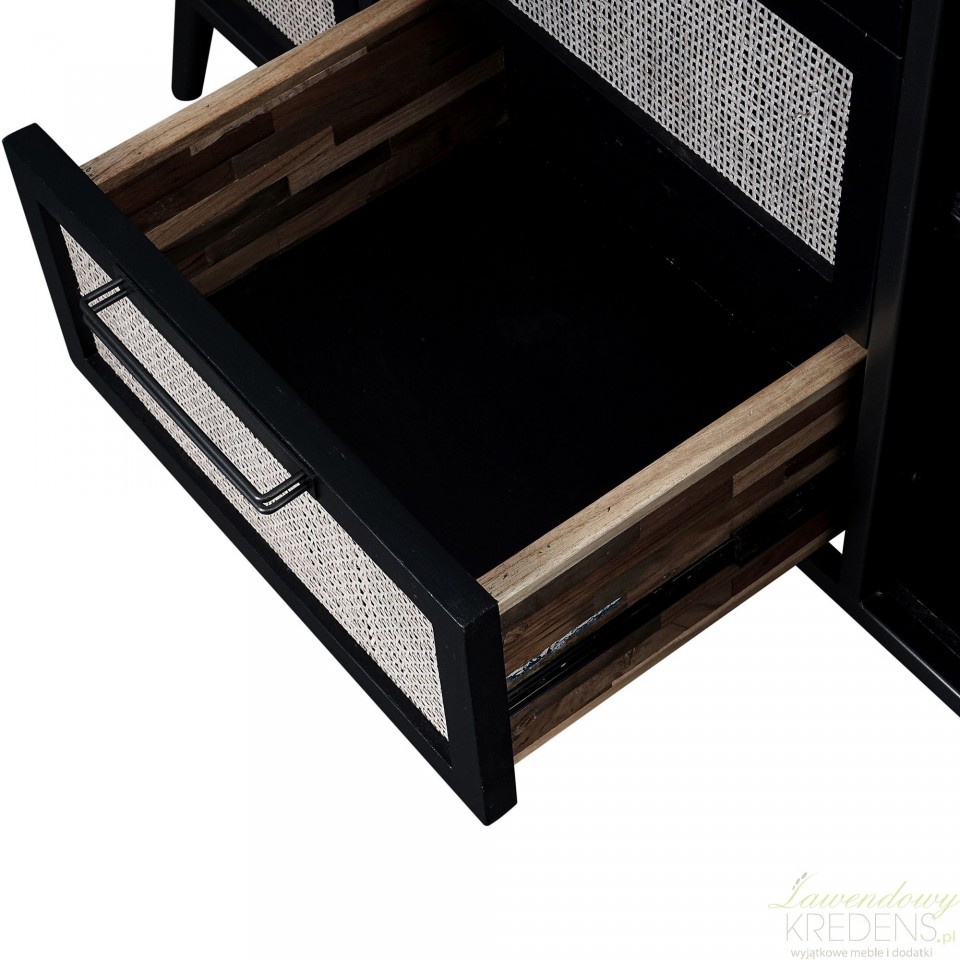 Marka Meble Prowansalskie NS oferuje najlepsze meble do przechowywania, czego doskonałym przykładem jest komoda skandynawska Nordi Black z rattanowymi elementami.
