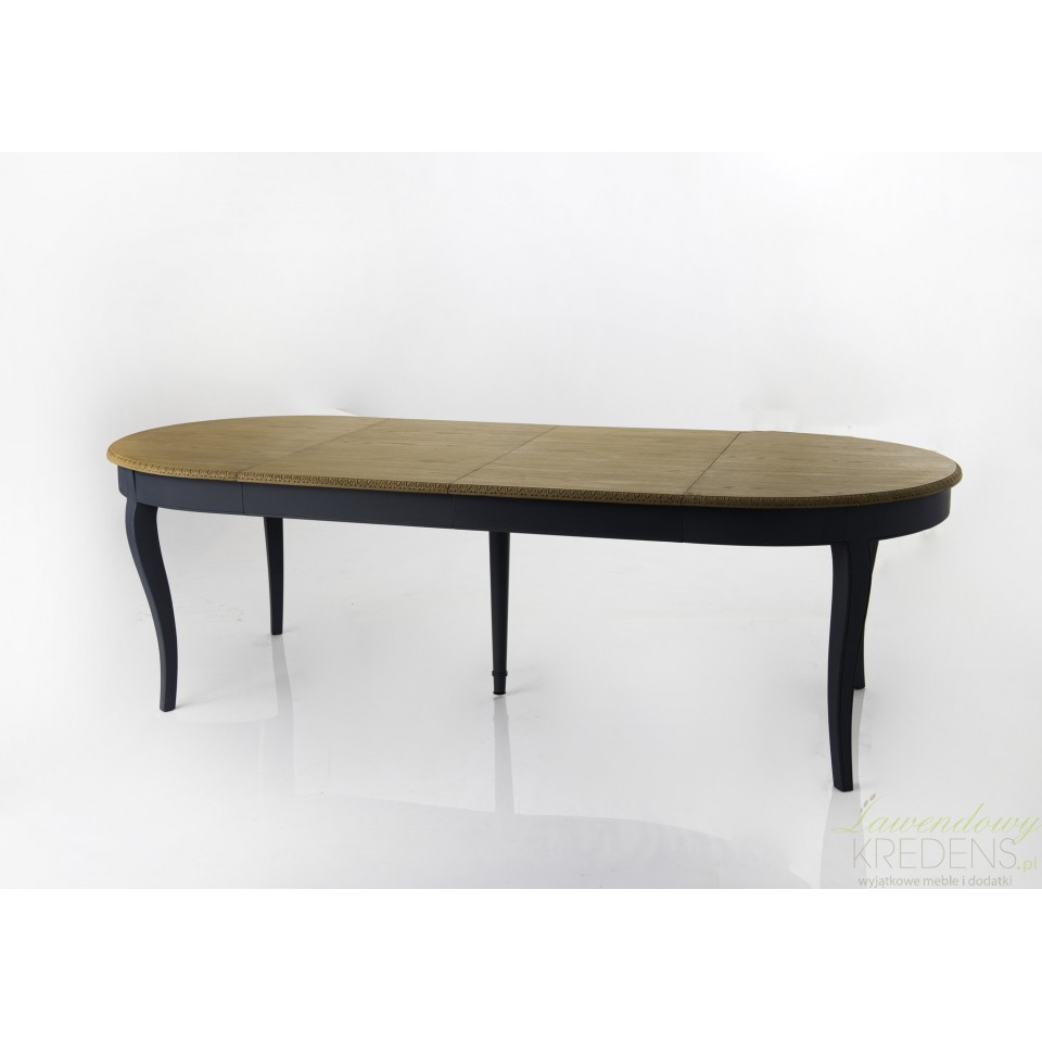 Stół posiada dwie wstawki o długości 60 cm. Maksymalna długość stołu po rozłożeniu wynosi 250 cm.