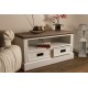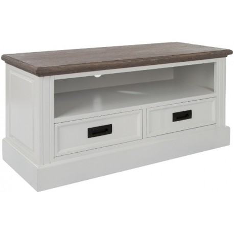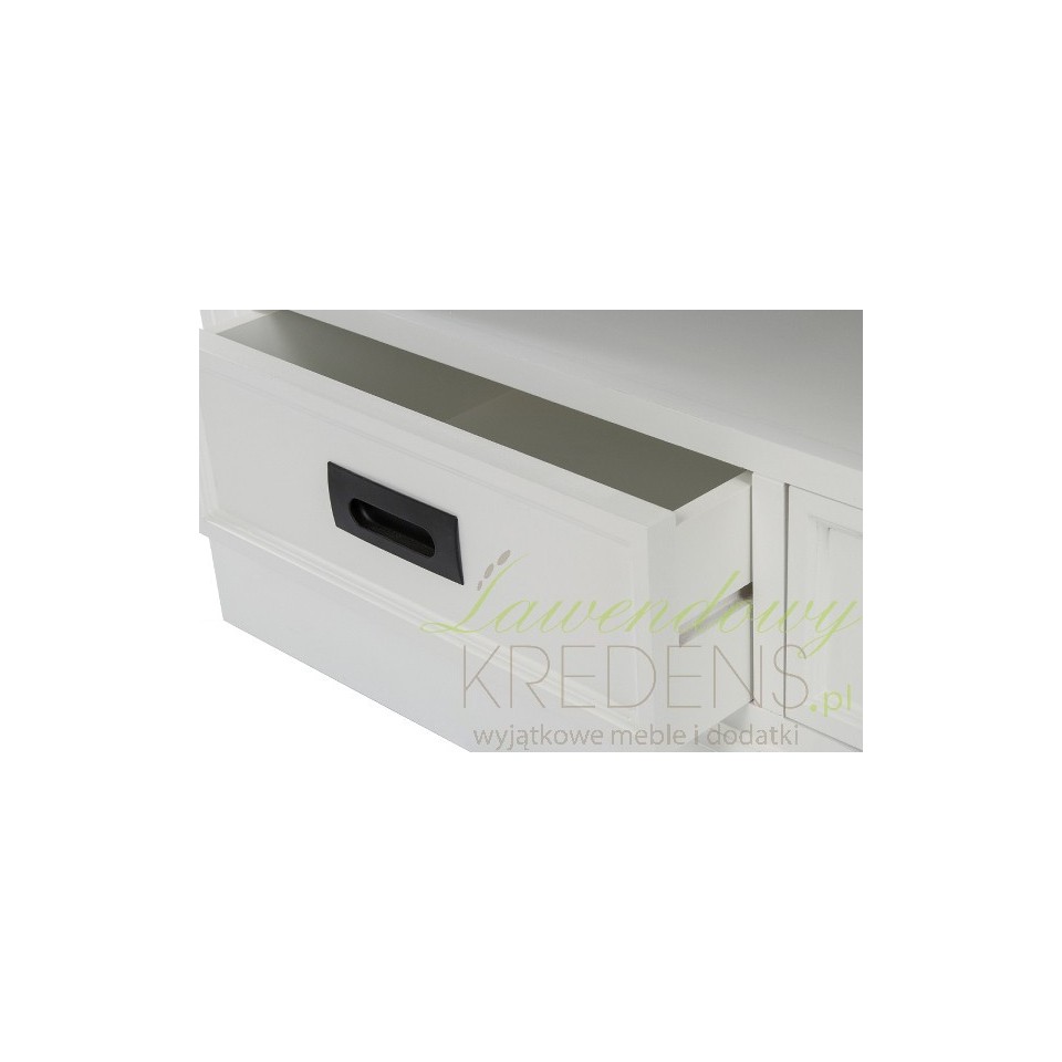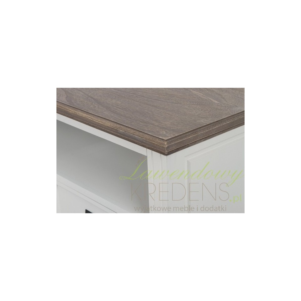 Stylowy wygląd komody rtv w stylu prowansalskim z kolekcji Marlo nada subtelny charakter każdemu salonowi. Połączenie białego drewna z metalowymi, czarnymi uchwytami oraz brązowym blatem pasuje nie tylko do prowansalskich aranżacji ale też do skandynawskich i klasycznych. Bogaty wybór mebli Marlo z różnym układem szuflad i szerokim wyborem kompaktowych rozmiarów pozwala na znalezienie idealnego mebla. Prowansalska komoda rtv z szufladami i półką na dowolne urządzenia do odtwarzania filmów lub muzyki sprawi, że salon będzie modny i estetycznie zaaranżowany.