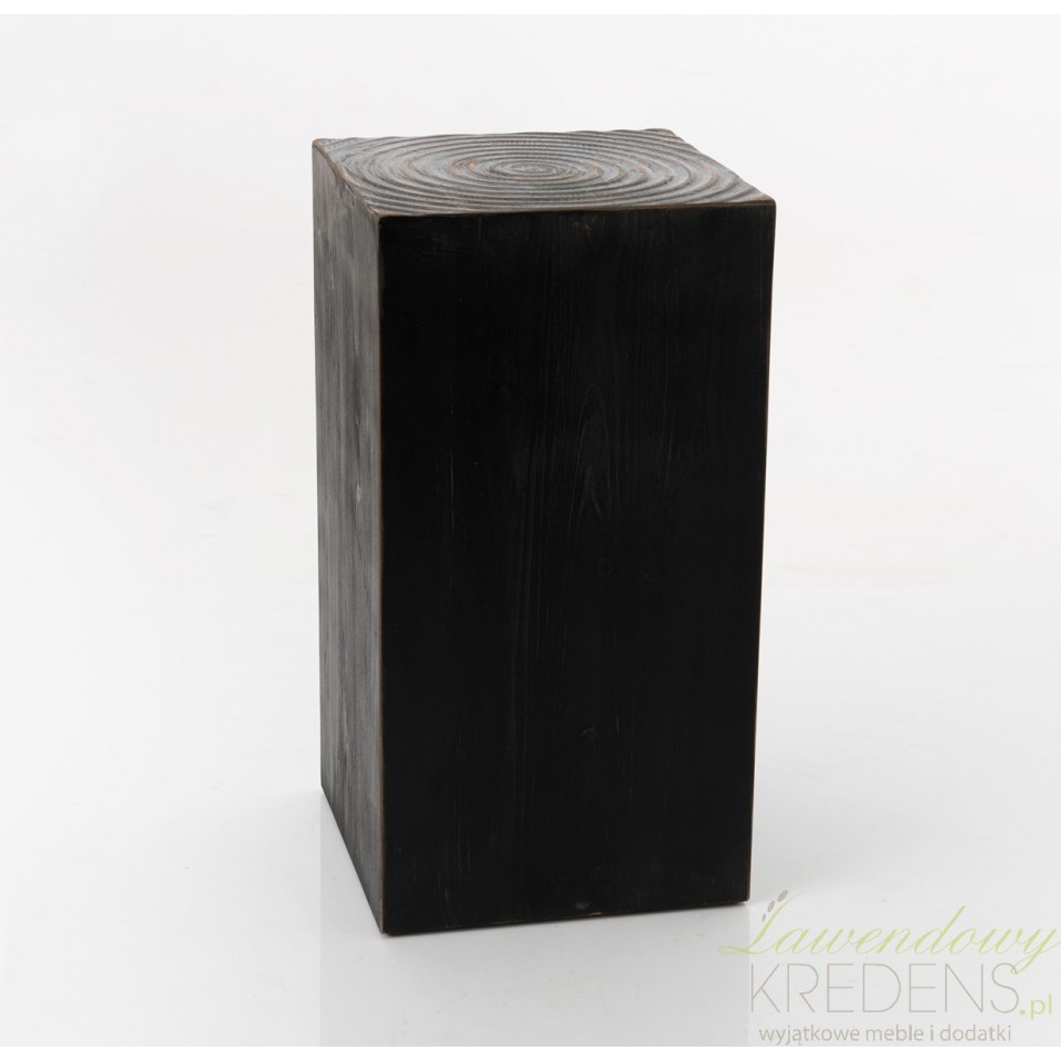 Drewniany stolik w stylu industrialnym ma kwadratową podstawę i kruczoczarny kolor. Ta masywna bryła ma szeroki wachlarz zastosowań i może być wykorzystana w każdym wnętrzu Twojego domu.