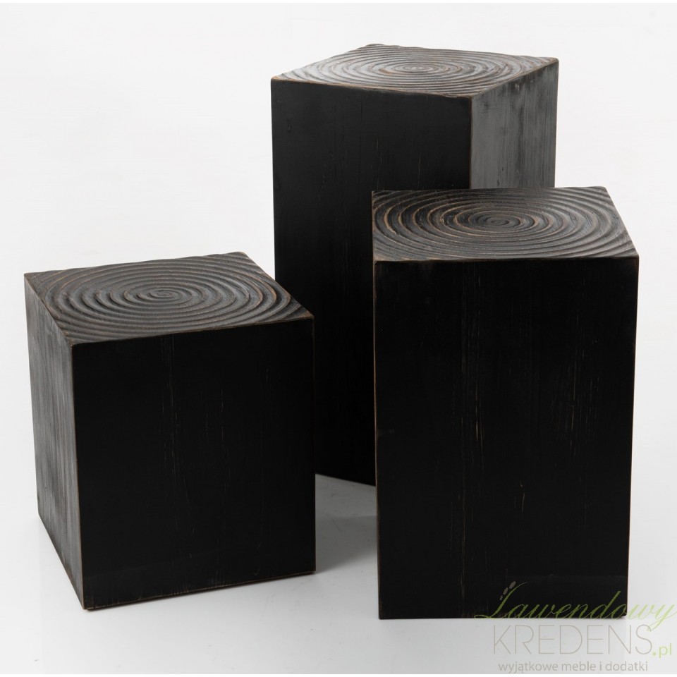 Czarny stolik w stylu industrialnym wysoki na blisko 80 centymetrów to zabudowana bryła, która kształtem przypomina duży, drewniany klocek. Piękno tego mebla wynika z eleganckiej kolorystyki i blatu zdobionego regularnymi, wypukłymi słojami inspirowanymi wyglądem prawdziwych słojów widocznych w przekroju drewna. Czarne meble industrialne słyną z tego, że są bardzo eleganckie, i przydają się w aranżacji wnętrz z klasą. Jesteśmy pewni, że znajdziesz swój idealny stolik industrialny w naszym sklepie!