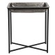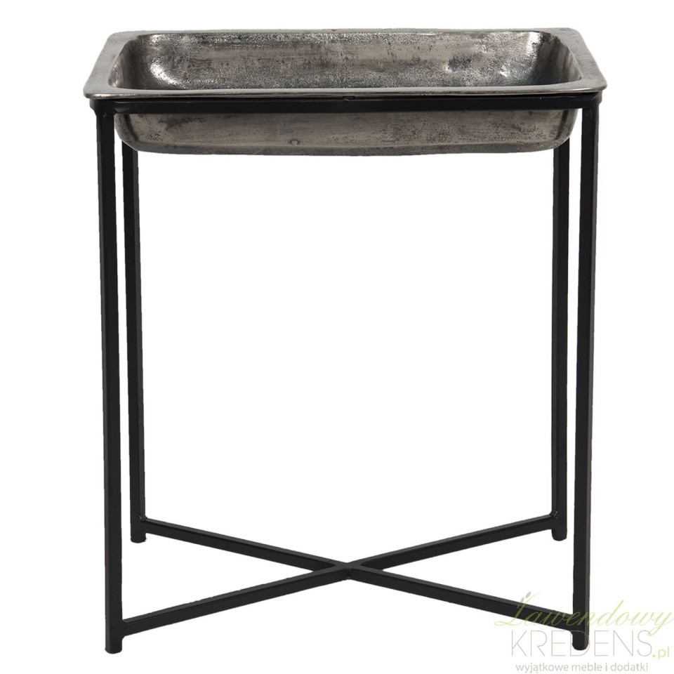 Postarzany stolik loft metalowy z misą i metalowym stelażem doskonale zagra z wystrojem wnętrz inspirowanych epoką przemysłową.