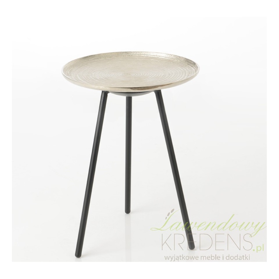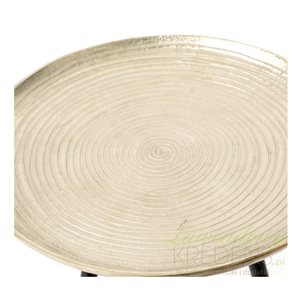 Wykonana z metalu kolekcja stolików z okrągłymi blatami z pewnością zrobi niezatarte wrażenie. Metalowe stoliki w minimalistycznym stylu i wzornictwie zapewniają dodatkową powierzchnię, jednocześnie wydobywając to, co najlepsze w wystroju Twojego wnętrza. Ten metalowy stolik z blatem zdobionym prążkowanym wzorem opiera się na trzech prostych nóżkach. Metalowe meble są solidne technicznie i to właśnie z tego powodu powinieneś mieć je w swoim domu!