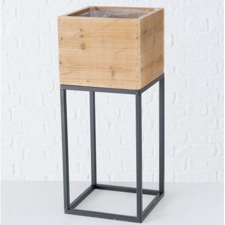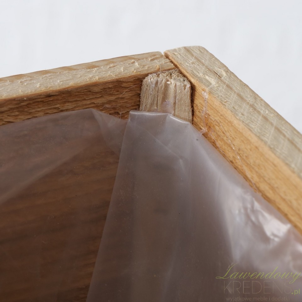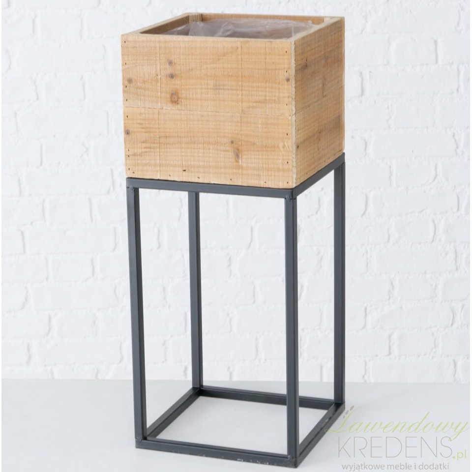 Donica została wykonana z drewna, a podstawa, czyli czarne nogi uformowano z metalowych elementów. Wnętrze skrzynki zabezpieczono dodatkowo folią. Metalowe kwietniki z dodatkiem drewna to hit nadchodzącej wiosny. Wybierz dodatki w stylu loftowym i zachwyć gości modną aranżacją.