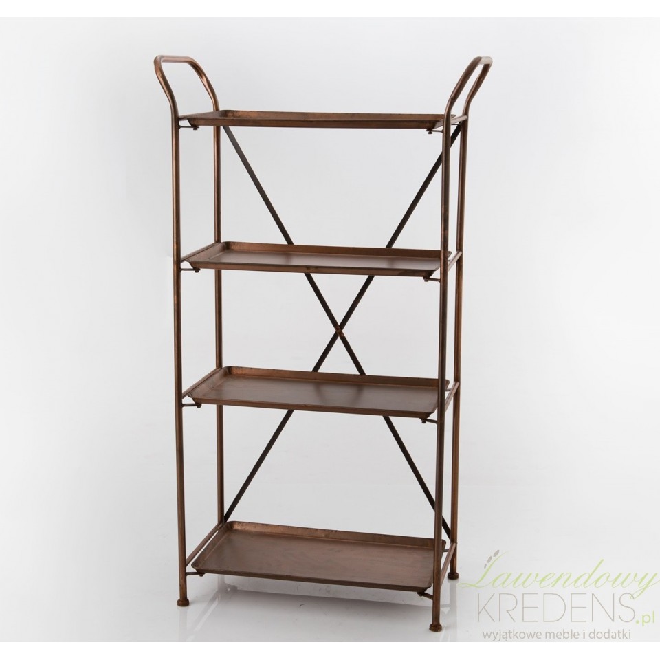 Dzięki metalowym meblom Twoje wnętrze może wyglądać każdego dnia inaczej. Cztery poziomy szerokich półek dają nieograniczone możliwości ustawiania dekoracji, pojemników, kartonów na bibeloty i wielu innych przedmiotów. Metalowy regał w całości powstał z metalu w kolorze starej miedzi. Metalowe meble loftowe odmienią każde pomieszczenie!