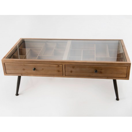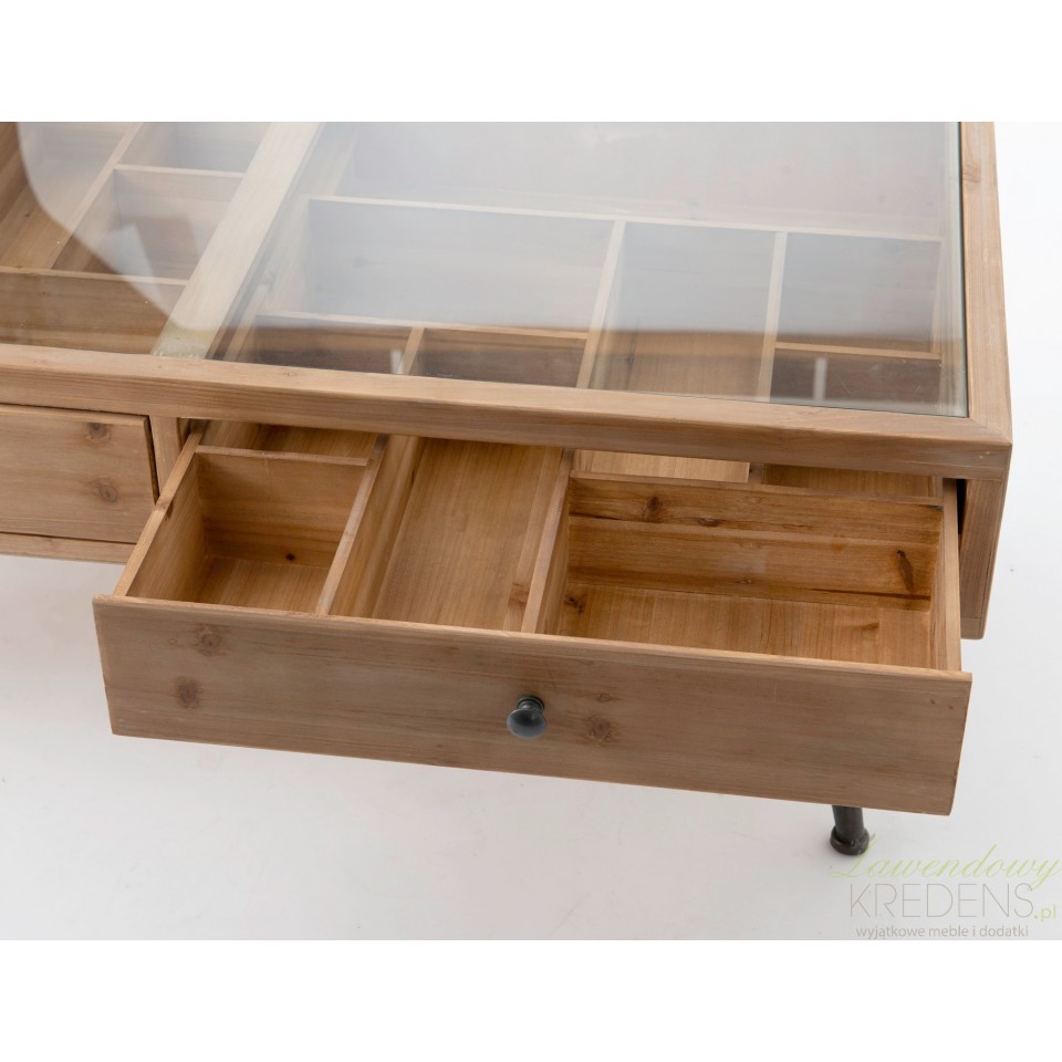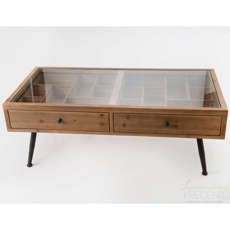 Stoły w stylu loftowym to z zasady proste meble, najczęściej zrobione z metalu i drewna. Jednak stół kawowy Cabin posiada coś czego brak innym meblom - szklany blat ujawniający zawartość dwóch pojemnych szuflad z przegródkami. Dopasowany zarówno do potrzeb eleganckich jak również umiłowanych w naturze wnętrz. Takie meble loftowe to nowoczesne podejście francuskich projektantów do wyposazenia współczesnych wnętrz.
