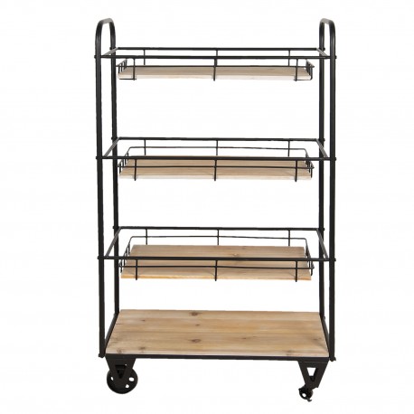 Regał w stylu industrialnym z metalowym stelażem i drewnianymi półkami oddaje kwintesencję współczesnego stylu. Trzy półki otoczone metalowym rantem to świetne miejsce na przybory kuchenne, dokumenty w biurze lub akcesoria w łazience. Metalowy regał to przydatny mebel, i tak jak pozostałe meble industrialne od Clayre & Eef jest bardzo solidny. Nie zwlekaj i już teraz dodaj go do swojego koszyka zanim zrobi to ktoś inny!