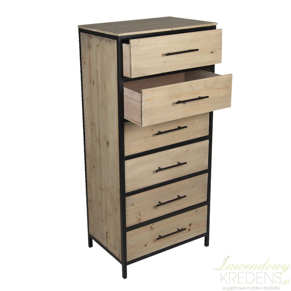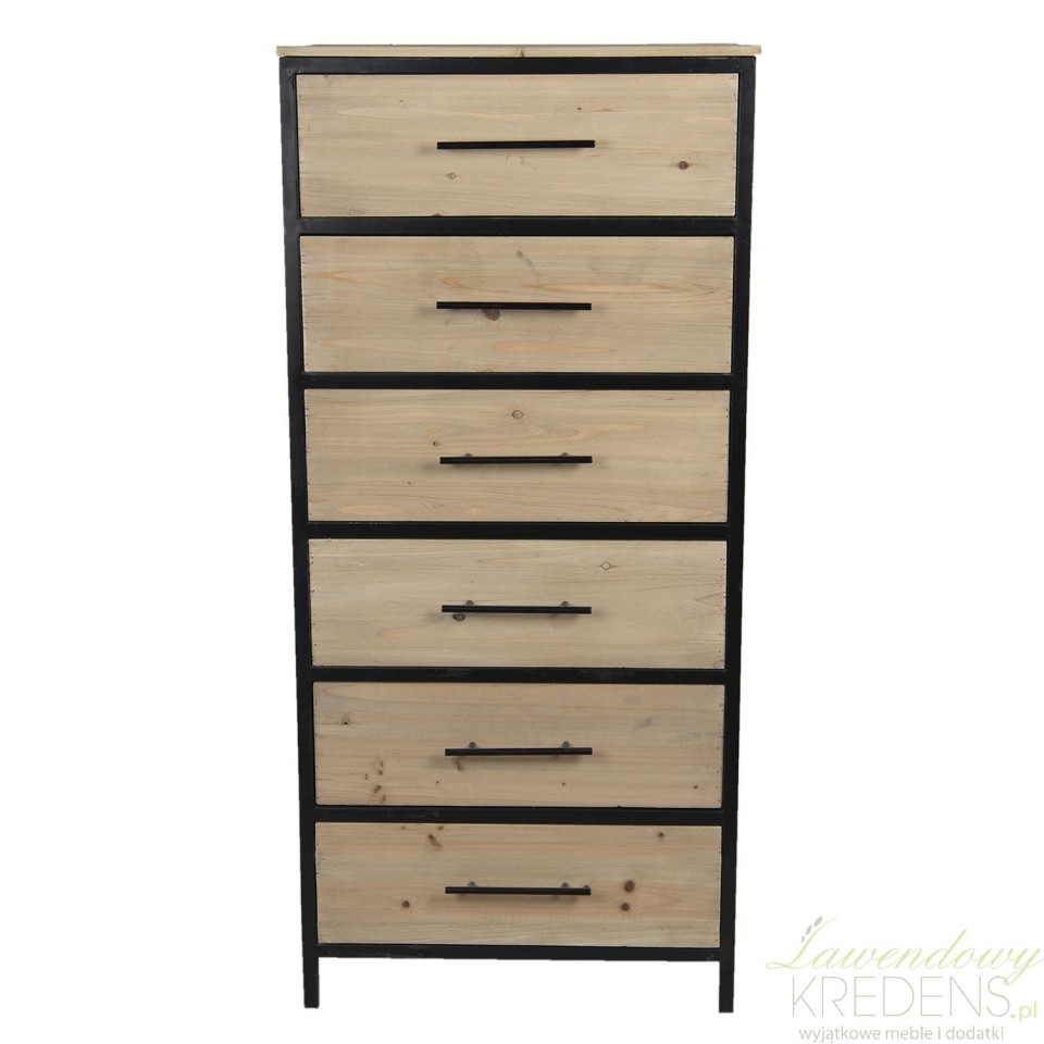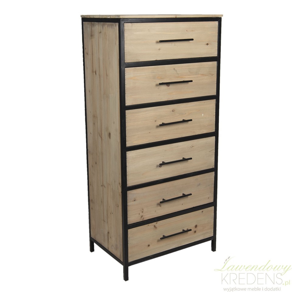 Wysoka komoda loft została wykonana z troską o każdy szczegół, z solidnych materiałów: drewna i metalu. Komoda od Clayre & Eef to elegancki mebel inspirowany minimalizmem. Wyposażona w sześć szuflad z drewnianym frontem, które oprawiono metalowymi listwami prezentuje się bardzo elegancko. Dodatkowo przy każdej z szufladek zamontowano prosty, czarny uchwyt. Funckjonalne meble loftowe - każdy marzy o tym by mieć je w swoim domu!