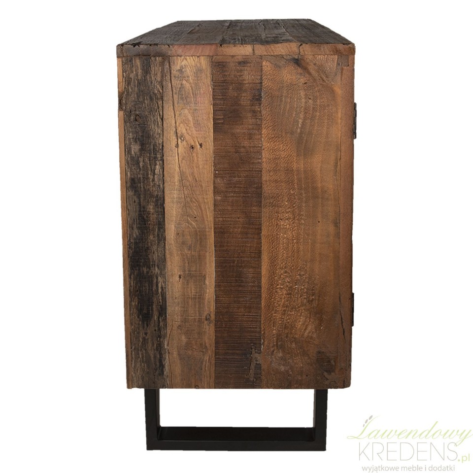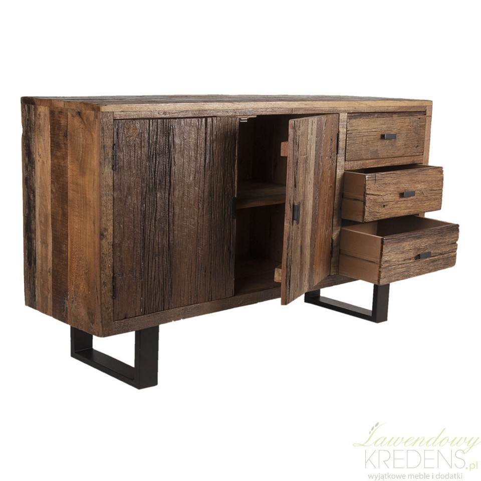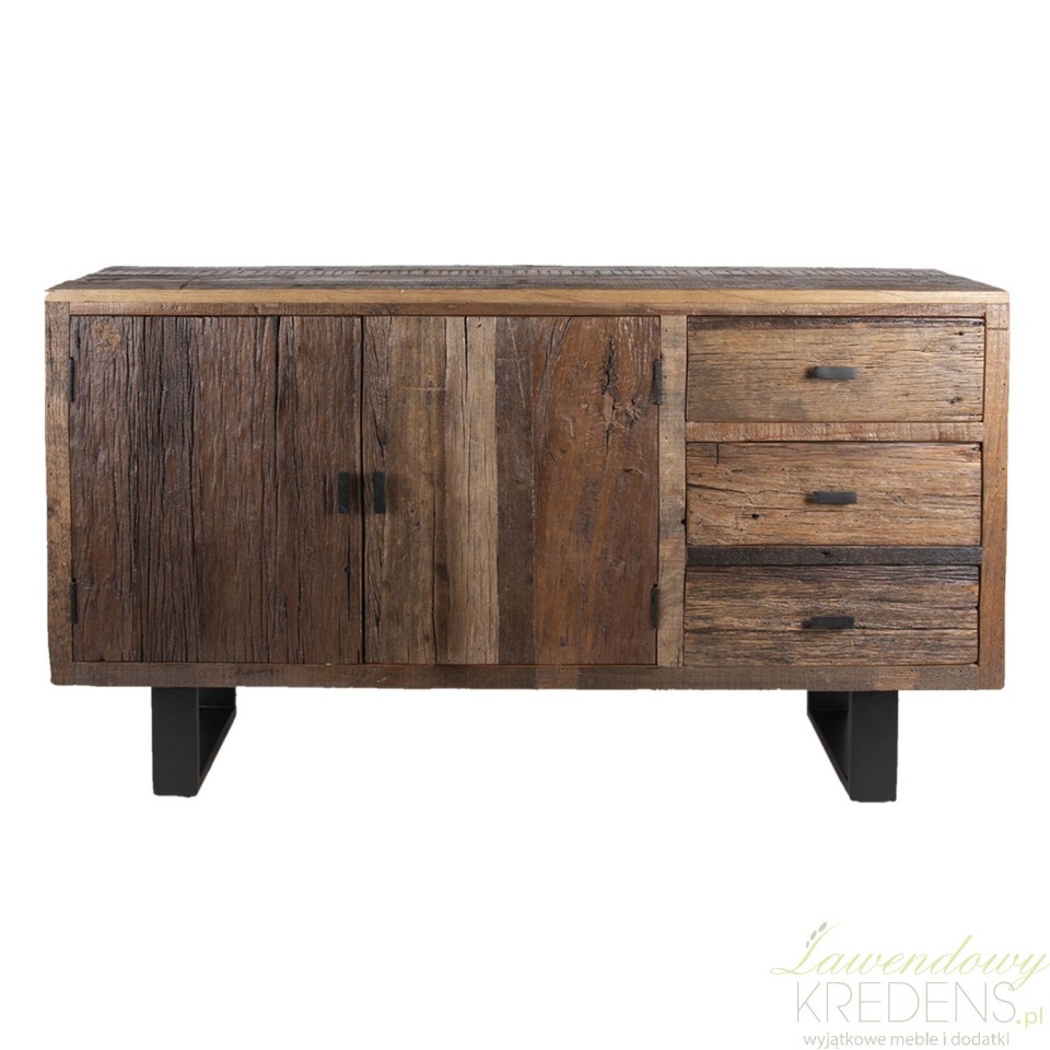 Szeroka, klasyczna i prosta, komoda w stylu industrialnym jest niezbędnym i solidnym dodatkiem do wystroju salonu. Ekologiczna konstrukcja z drewna i metalu posiada efektowne usłojenie na całej powierzchni, które nadaje jej tradycyjny akcent, dzięki czemu mebel świetnie łączy się z szeroką gamą dekoracji. Pojemna szafka i trzy szuflady zapewniają miejsce do przechowywania potrzebnych przedmiotów. Niezastąpione meble w stylu industrialnym do współczesnego wnętrza to komody industrialne od Clayre & Eef!