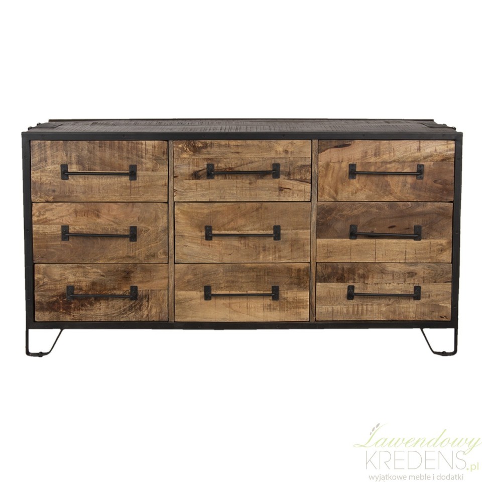 Wprowadź nowoczesny design do swojego domu dzięki tej modnej, drewnianej komodzie z kolekcji Collect. Komoda w stylu industrialnym z dziewięcioma szufladami jest idealna do każdej przestrzeni. Naturalne, brązowe wykończenie jest wzmocnione repliką słojów, nadając meblowi autentyczny wygląd. Komody industrialne to odpowiednie miejsce na drobiazgi, odzież i akcesoria kuchenne. To w jaki sposób wykorzystasz meble w stylu industrialnym zależy tylko od Ciebie!