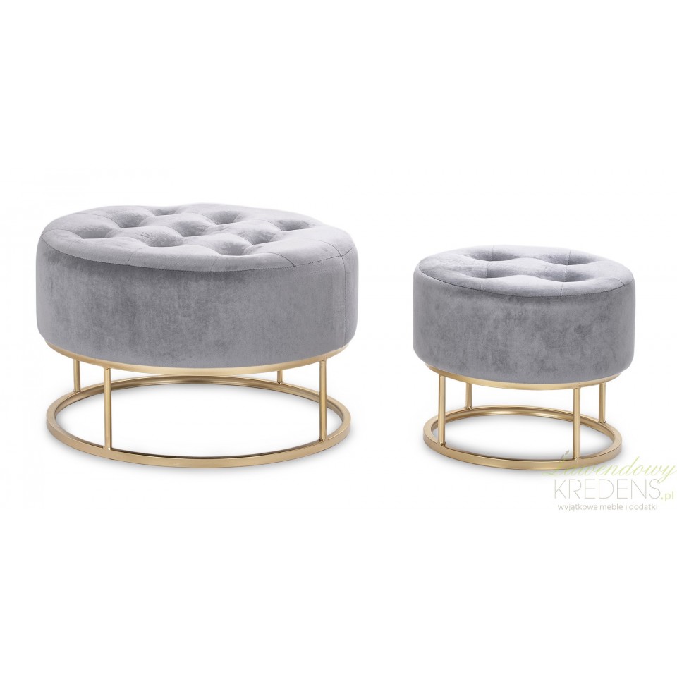 Okrągłe pufy glamour szare zostały zainspirowane modnymi w tym sezonie kolorami, które można było zobaczyć na pierwszych stronach czasopism o wystroju wnętrz i meblach.