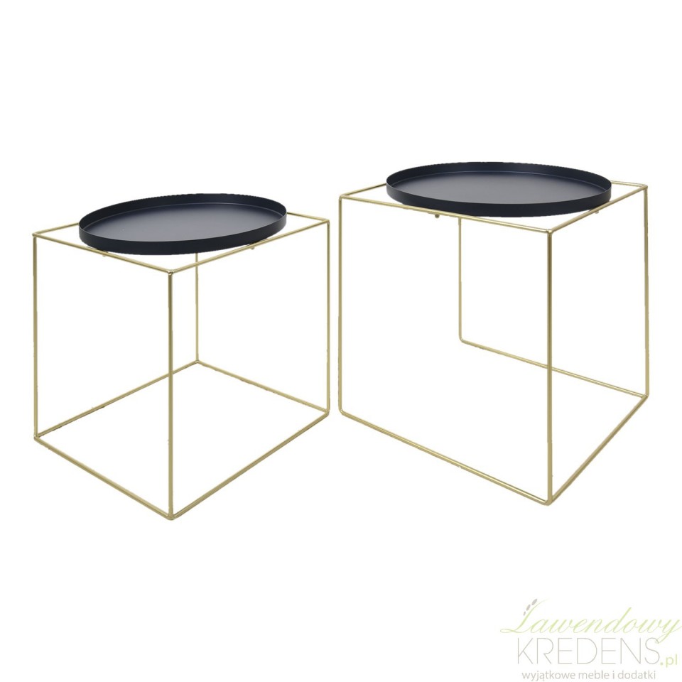 Złoto to kolor, który powraca z przytupem do świata aranżacji wnętrz! Z tego powodu marka Clayre & Eef prezentuje niekonwencjonalne, złote meble glamour – oto wykonane z metalu, złote stoliki z czarnymi blatami! Każdy z nich posiada okrągły blat i podstawę przypominającą kształtem sześcienną bryłę. To zdecydowanie propozycja dla tych, którzy kochają nowoczesne trendy, minimalizm we wnętrzach i niespotykane rozwiązanie. Zestaw dwóch stolików z pewnością wzbogaci każdy salon i nie tylko!