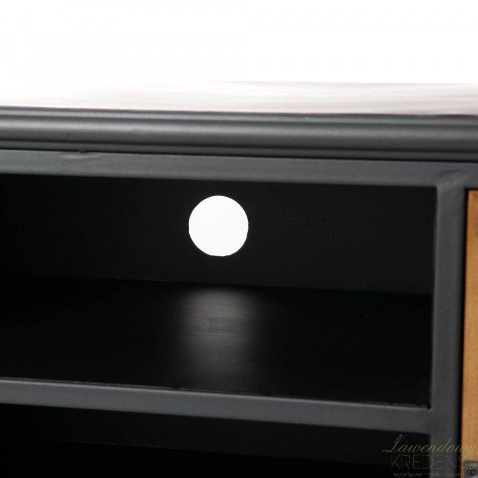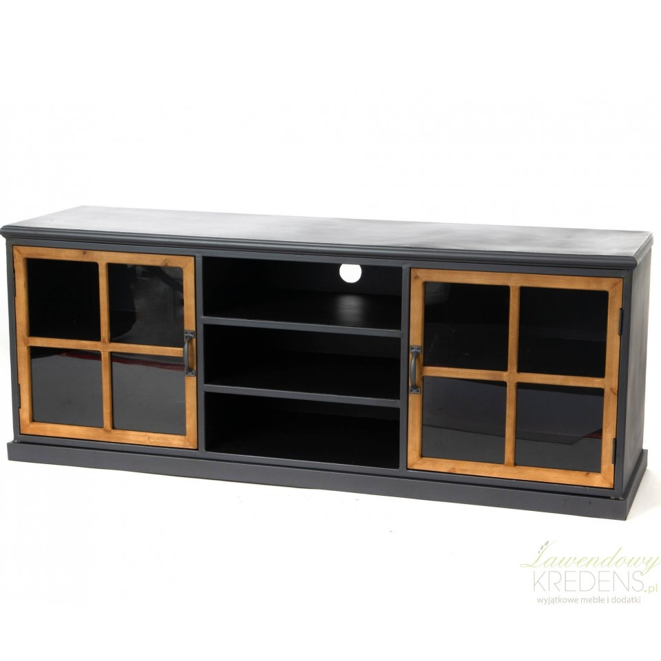 Komoda pod telewizor industrialna Robby perfekcyjnie oddaje klimat vintage. Wykonana została z drewna, metalu i szkła.