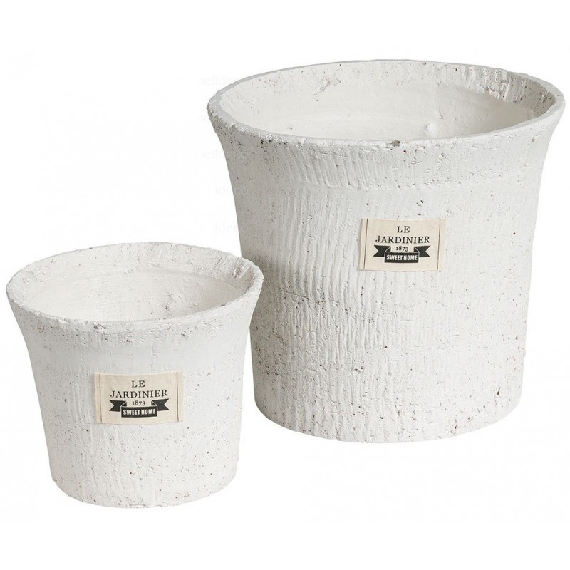 Białe osłonki na doniczki Belldeco z serii donic Simple Le Jardinier o nierównej, matowej powierzchni.