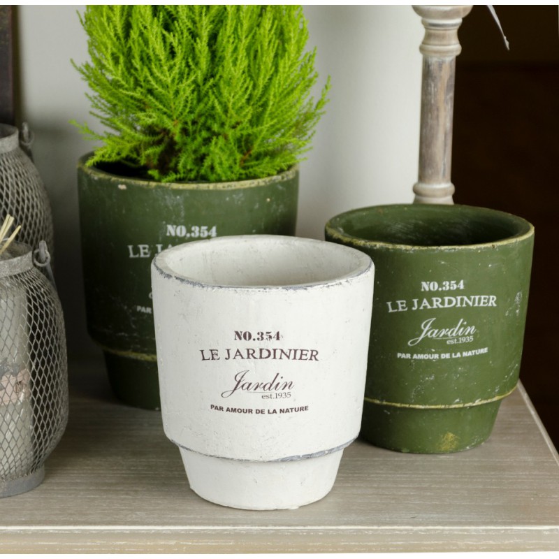 Piękne donice w stylu francuskim o ciemnozielonym kolorze i nieszkliwionej, surowej fakturze.