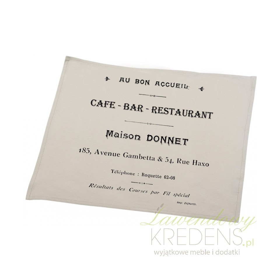 Beżowe serwety na stół French Home z różnymi napisami w języku francuskim.