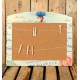 Tablica kokowa w ozdobnej, drewnianej ramie posiadająca drewniane spinacze na zdjęcia lub notatki.